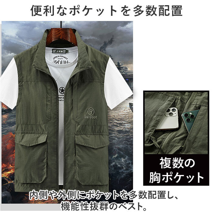 商品説明 | ・・釣りやキャンプなどアウトドアにピッタリ!機能的なベストが登場。 ・【便利なポケットを多数配置】 ・内側や外側にポケットを多数配置し、機能性抜群のベスト。 ・【フィット感の調節OK】 ・裾にはドローコードが付いていて、フィット感の調節OK。 ・【通気性の良いメッシュ生地】 ・内側はメッシュ生地なので、通気性が良くムレにくくオールシーズン活躍。 ・【乾きやすくお手入れ簡単】 ・薄手のサラッとした生地を使用。洗濯しても乾きやすくお手入れがしやすいのもポイント。 ・【スタイリッシュなシンプルデザイン】 ・年齢性別関係なく着こなせる、シンプルなデザインが魅力。シックなカラーがスタイリッシュ。 ・【ポケット仕様】 ・フロント上部:ファスナーポケット×2 ・フロント下部:面ファスナー付きポケット×2、オープンポケット×2 ・内側:ファスナーポケット×1 |