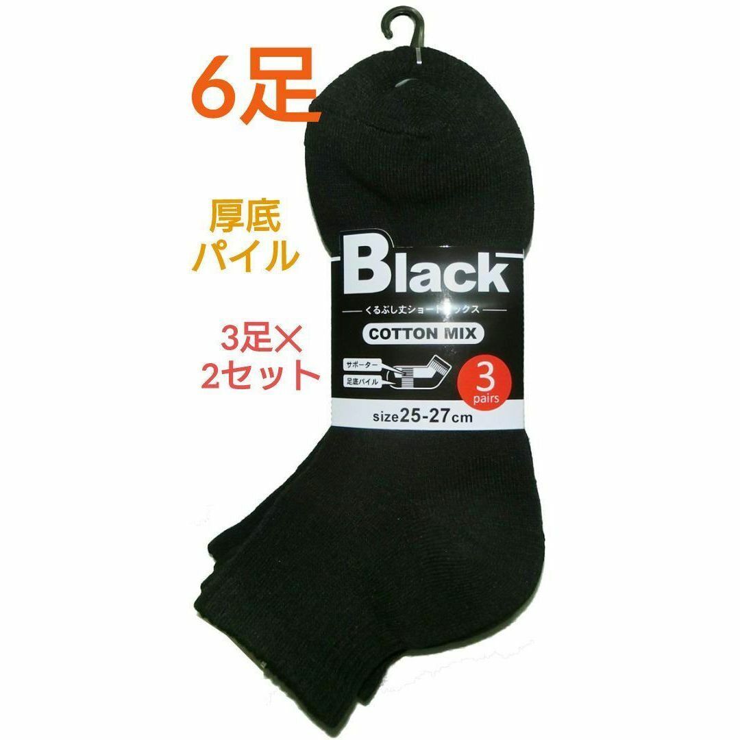 年間定番メンズソックス黒3足×2セット 厚底パイル地
