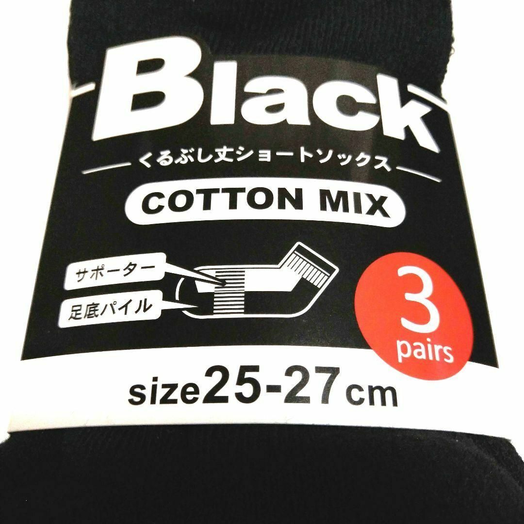(全6足)無地綿混くるぶしがかくれる丈メンズショートソックス ブラック まとめ売り