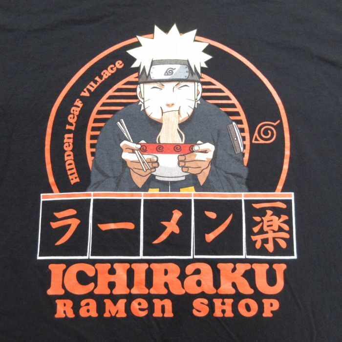 【商品名】 XL★古着 半袖 Tシャツ メンズ アニメ ナルト疾風伝 一楽 大きいサイズ コットン クルーネック 黒
