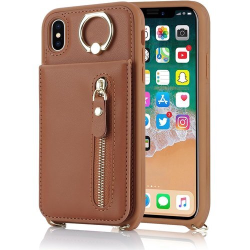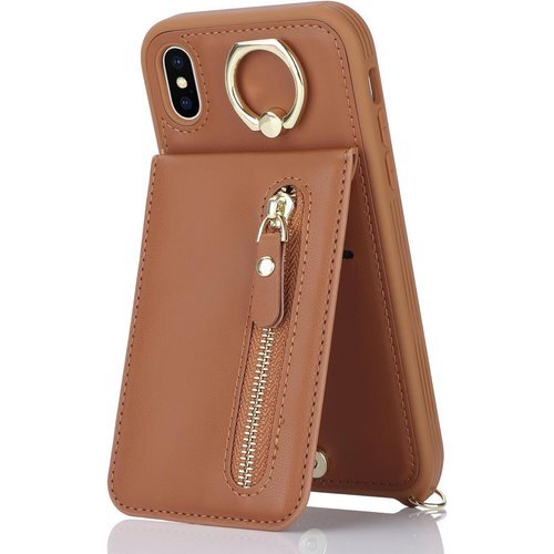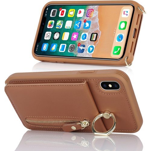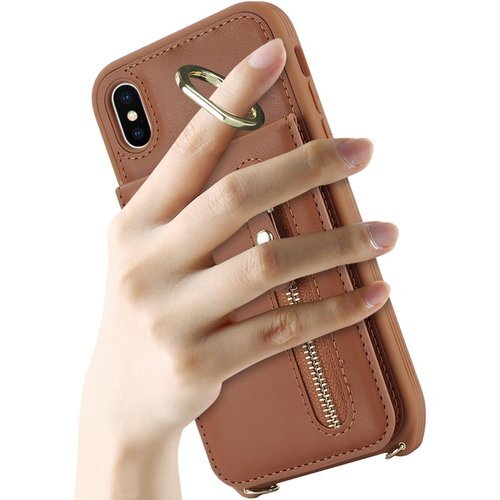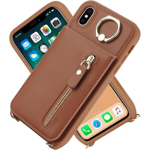iPhone XS MAX ケース ショルダー リング カード入れ カバー スマホケース 携帯カバー ブラウン 2229