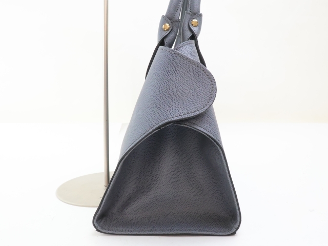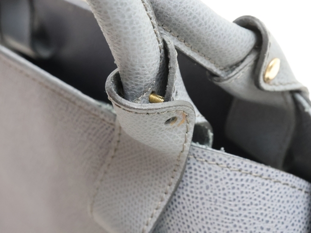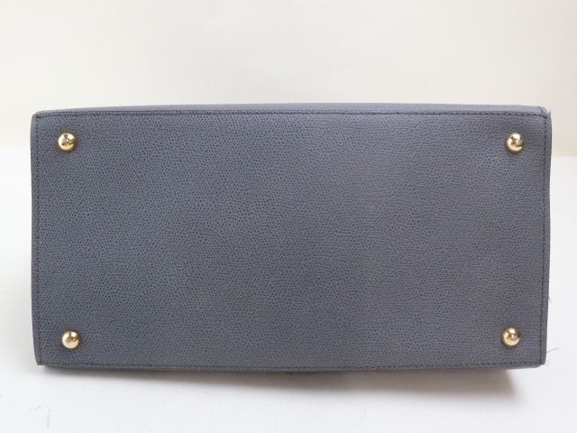 | 2506-82 レザー製 ハンドバッグ グレー系 金金具 変形型 | |
