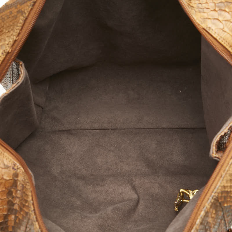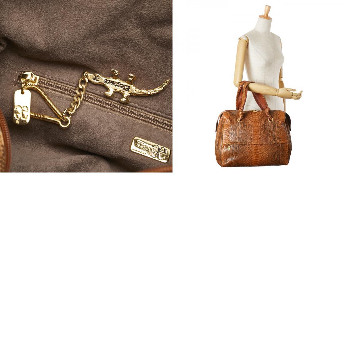 エレガンス トートバッグ ハンドバッグ ブラウン パイソン レザー レディース ELEGANCE 【中古】