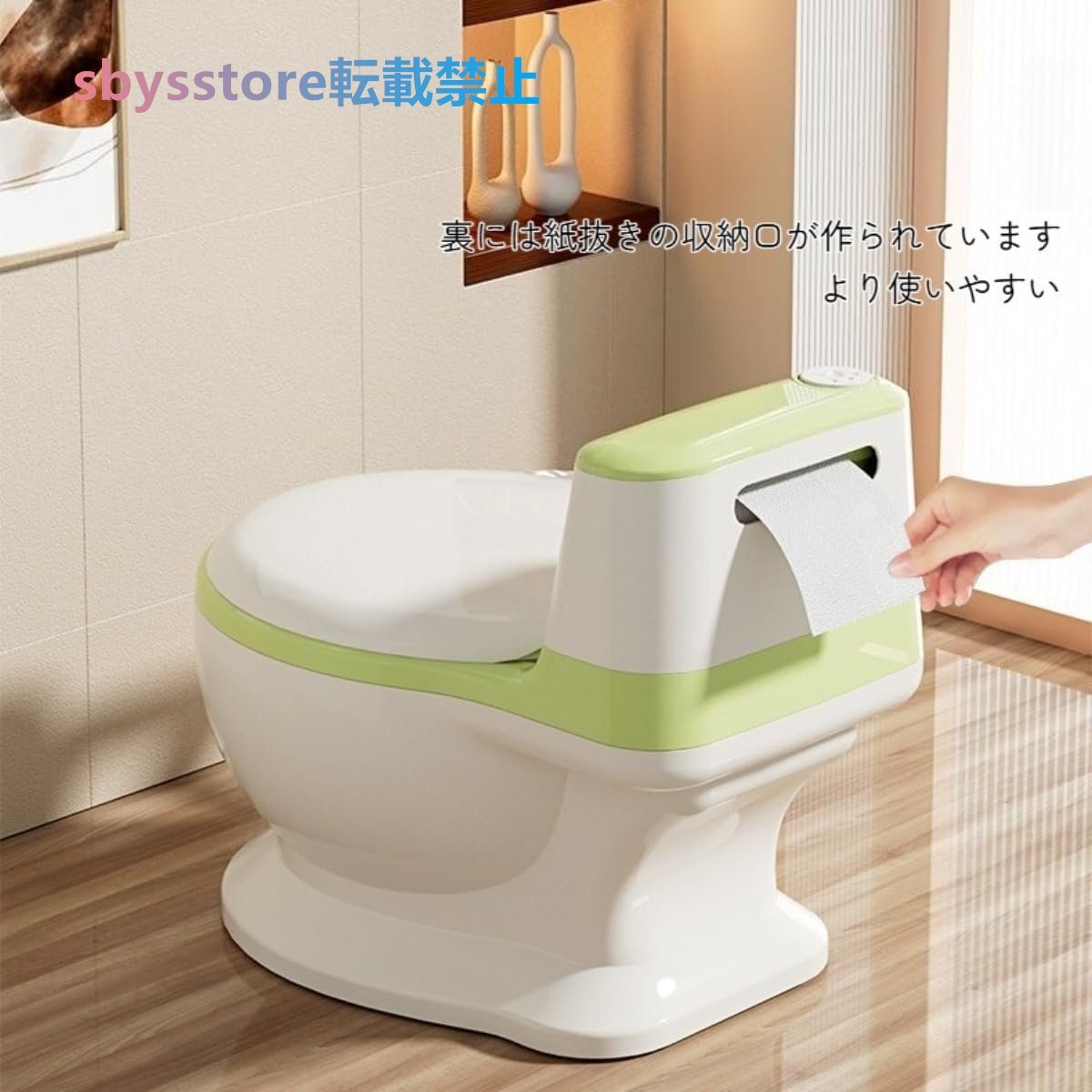 簡単お手入れ:分離式設計で洗浄が容易。便器部分だけを取り出して処理可能。水洗いだけで清潔を保て、忙しいママにも優しい設計です。