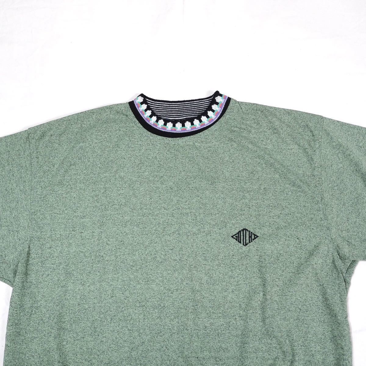 オールドステューシーを彷彿させる柄入りのネックリブ、身幅たっぷりのワイドフィット。