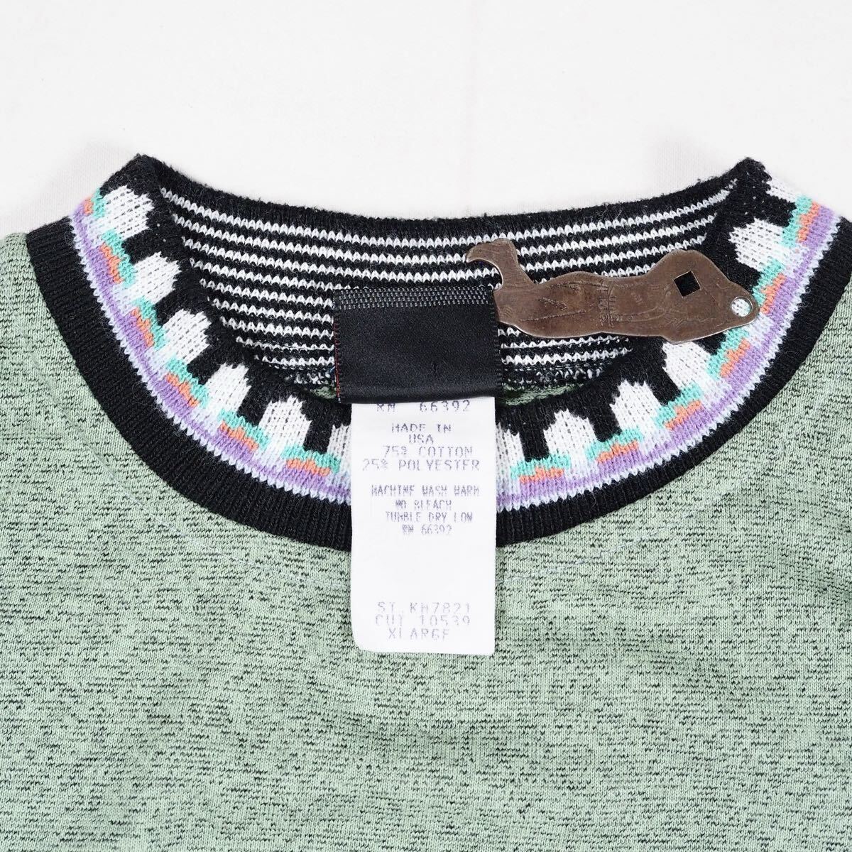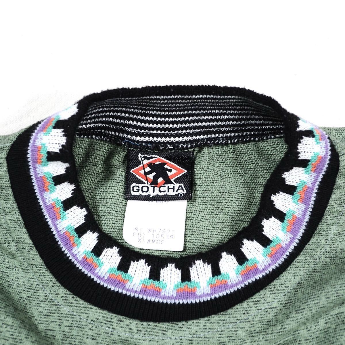 80s90s【柄リブ】USA製 GOTCHA ワイド Tシャツ XL グリーン系 OLD Stussy アメリカ製 サーフ SK8 ネイティブ柄 tiki ビンテージ