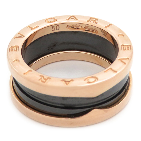 ブルガリ BVLGARI リング 指輪 ビーゼロワン K18PG セラミック ピンクゴールド×ブラック黒 750PG 18金 9号 #50(JP10) レディース定番 人気 美品 中古 | |