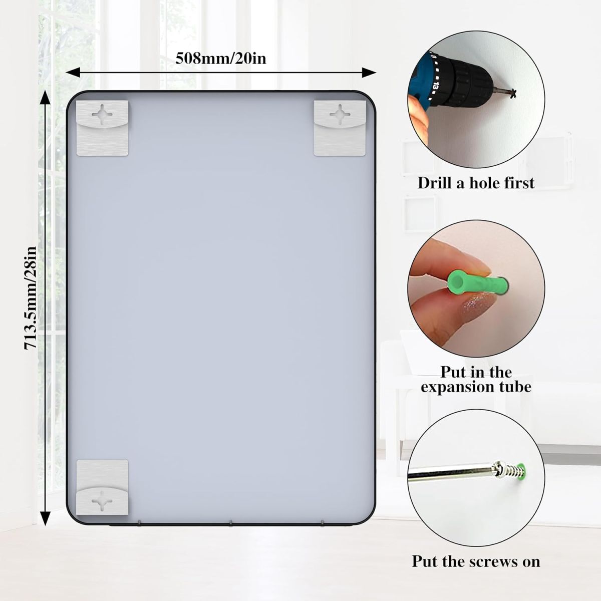 • 【多用途】この鏡はお部屋のどこに飾っていてもシンプルに溶け込みます。お部屋の広さや雰囲気、用途に合わせてお好きみのサイズをお選びいただきます。長方形ミラーは、日常使うトイレや洗面台、メイクルーム、リビング、バスルームだけではなく、洋風のショップの飾りとしてもなどに最適。