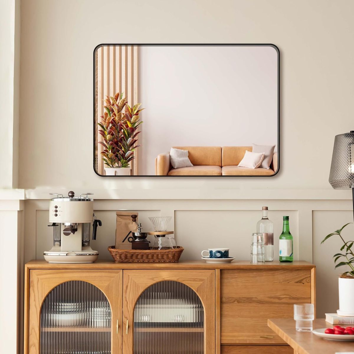 •  【商品情報】:壁掛け鏡サイズ:71.35x50.8cm、トレー/約40×12.5cm、鏡厚み4mm、カラー:ブラック、スタイル:壁掛け