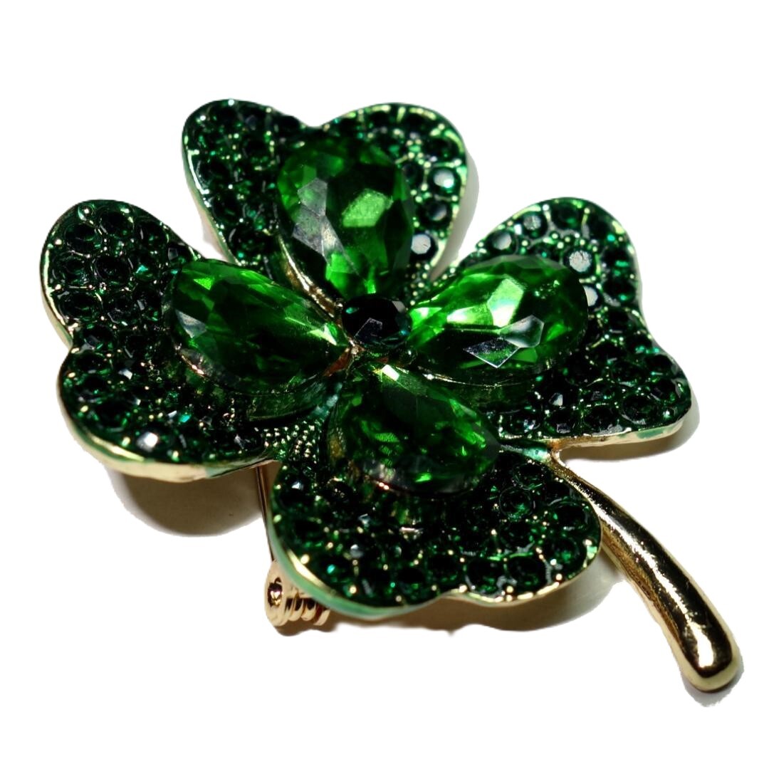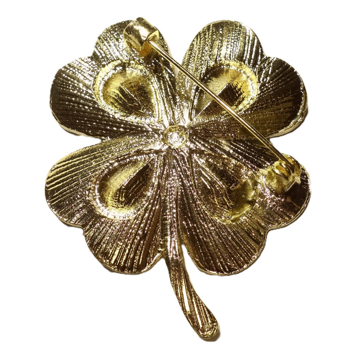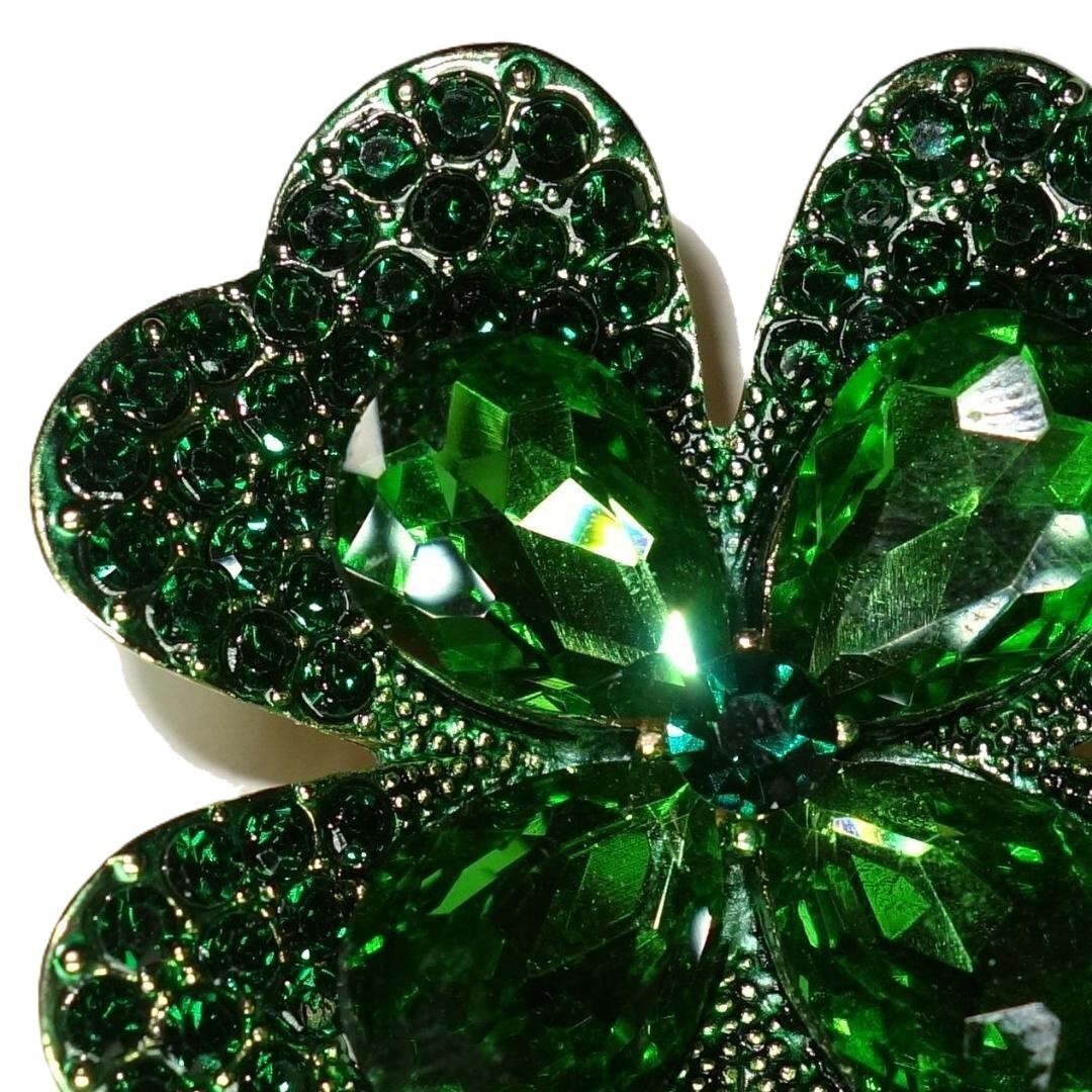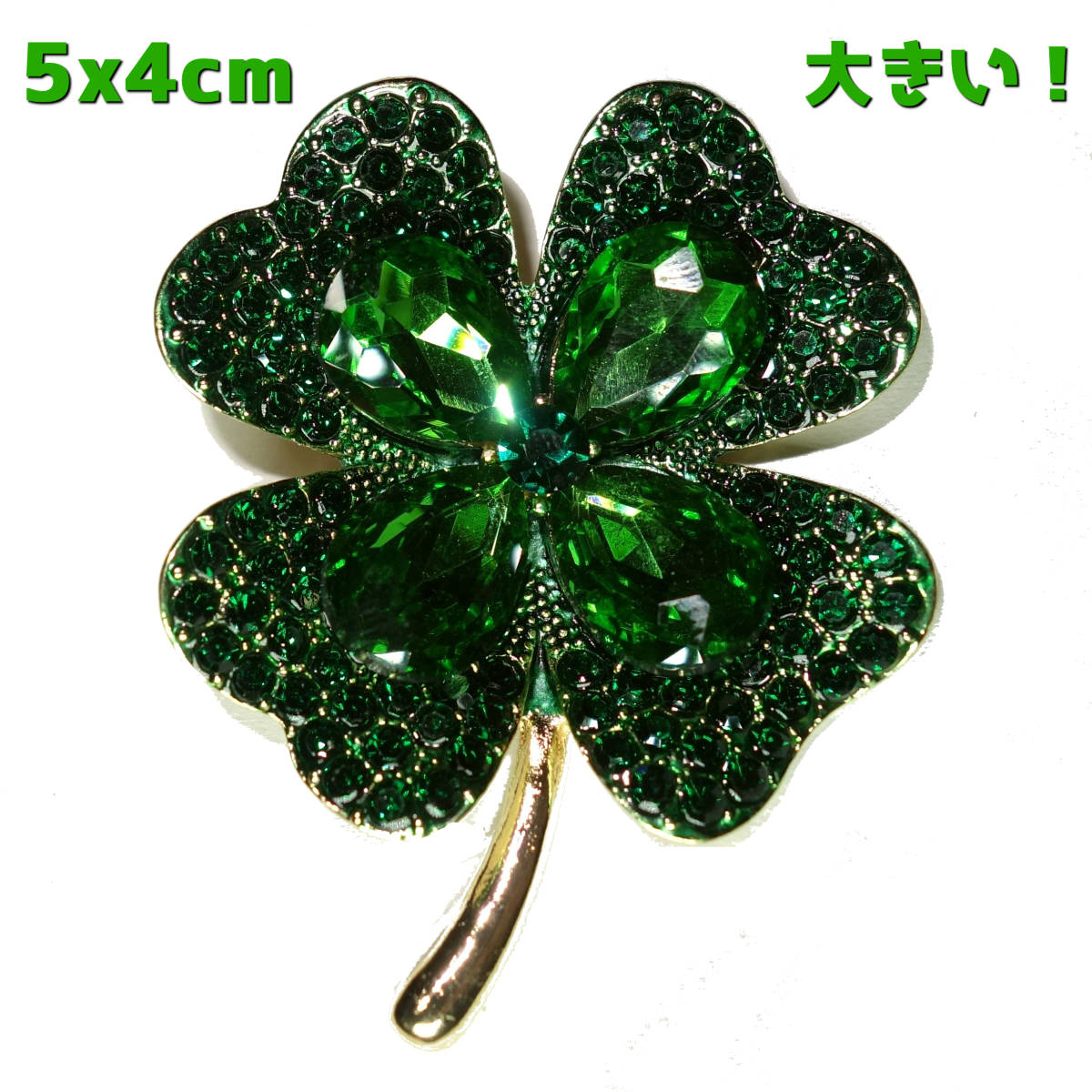 ビッグ 大きい! 緑色 四つ葉のクローバー クローバー ラインストーン ブローチ ピンブローチ ラペルピン ピンバッジ バッジ