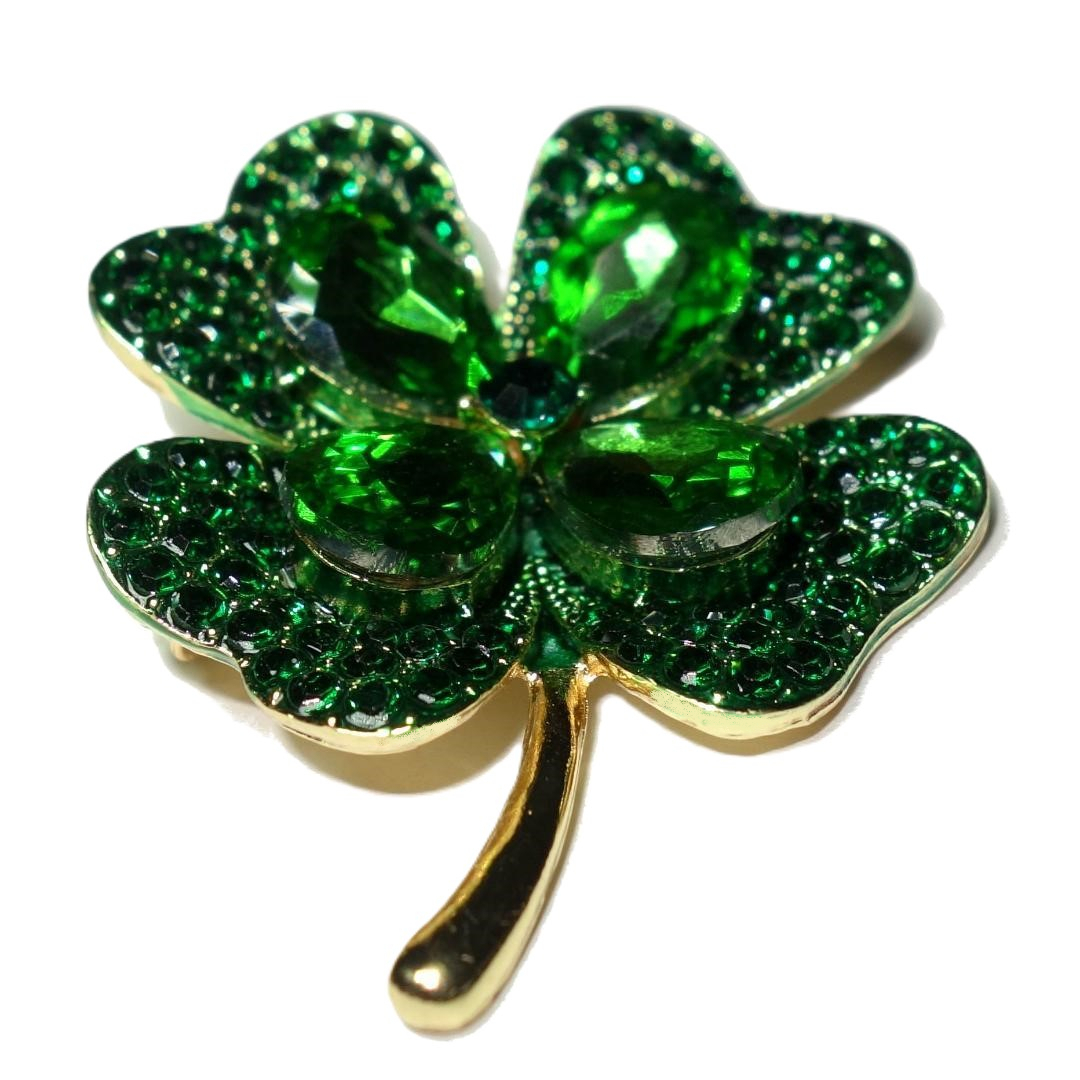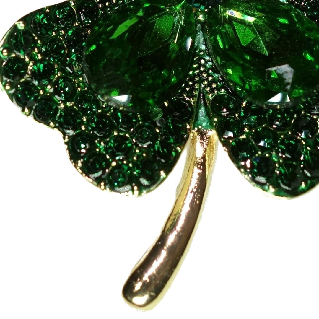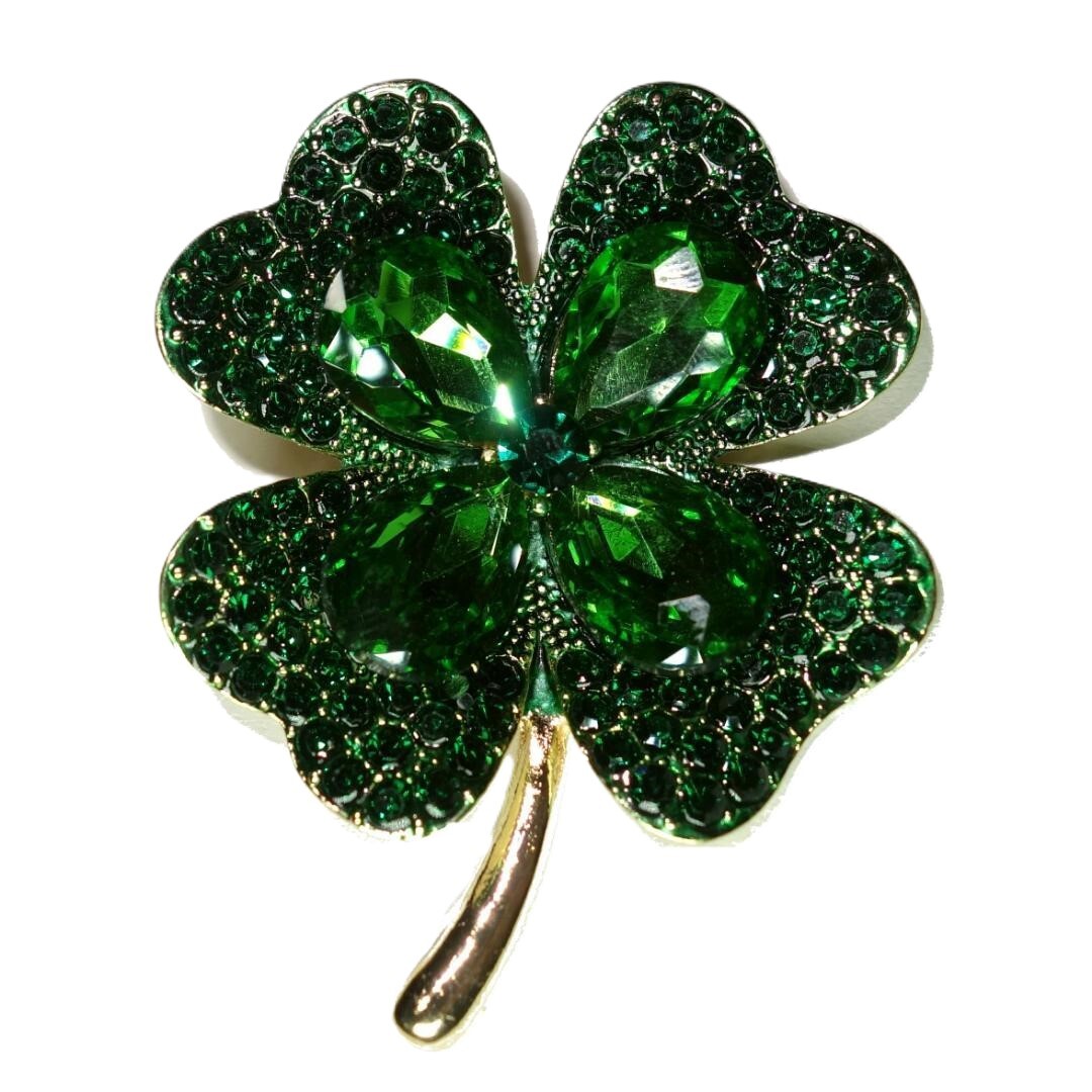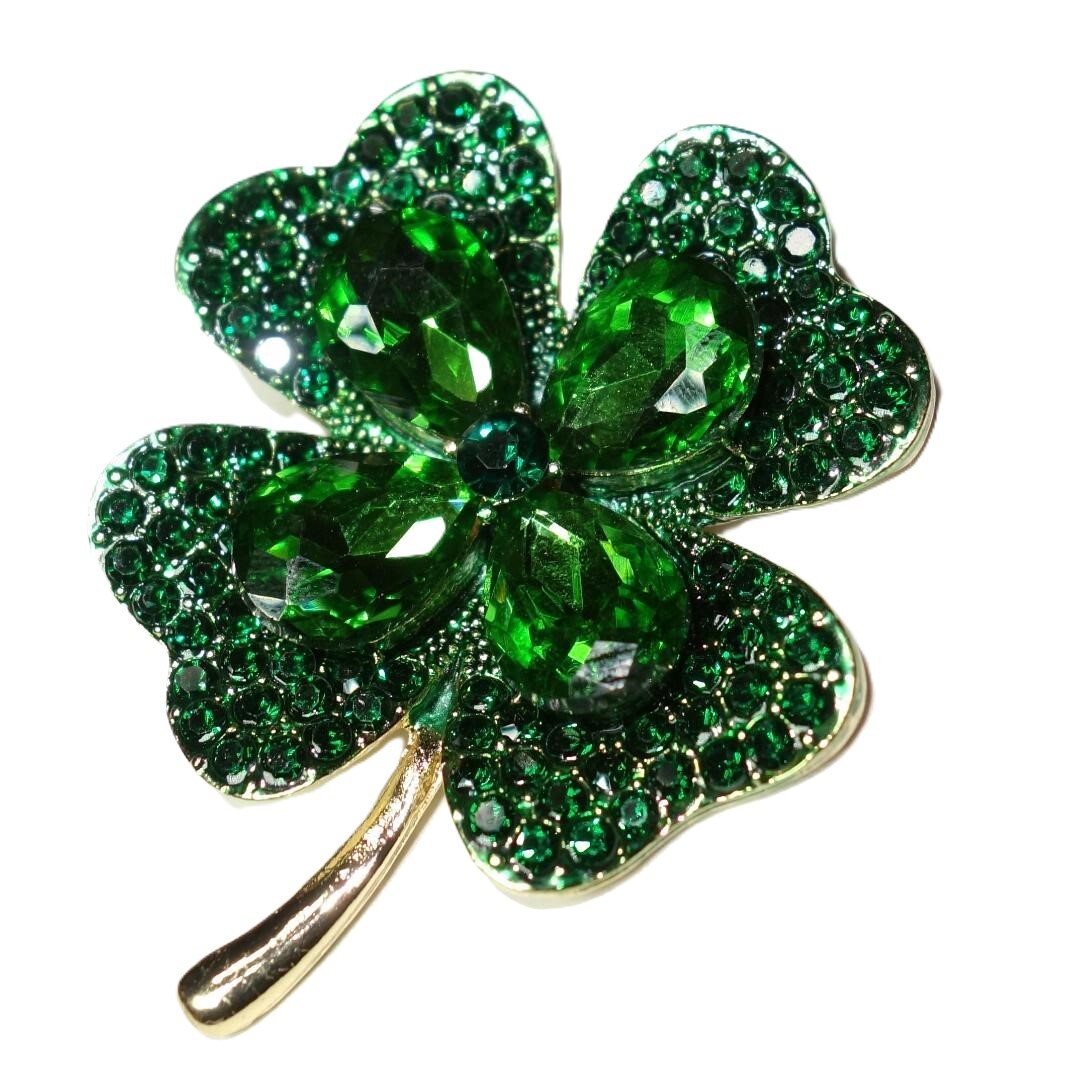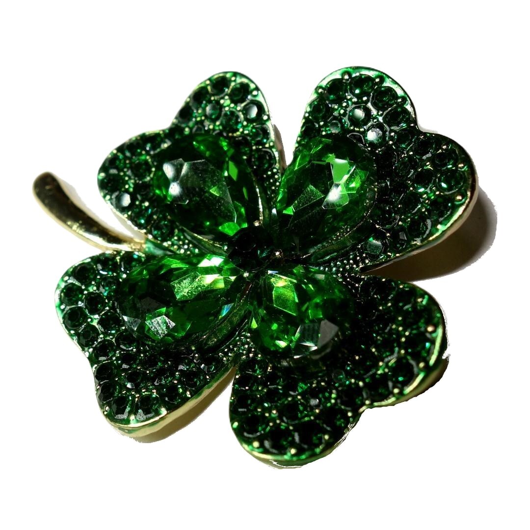 ビッグ 大きい! 緑色 四つ葉のクローバー クローバー ラインストーン ブローチ ピンブローチ ラペルピン ピンバッジ バッジ