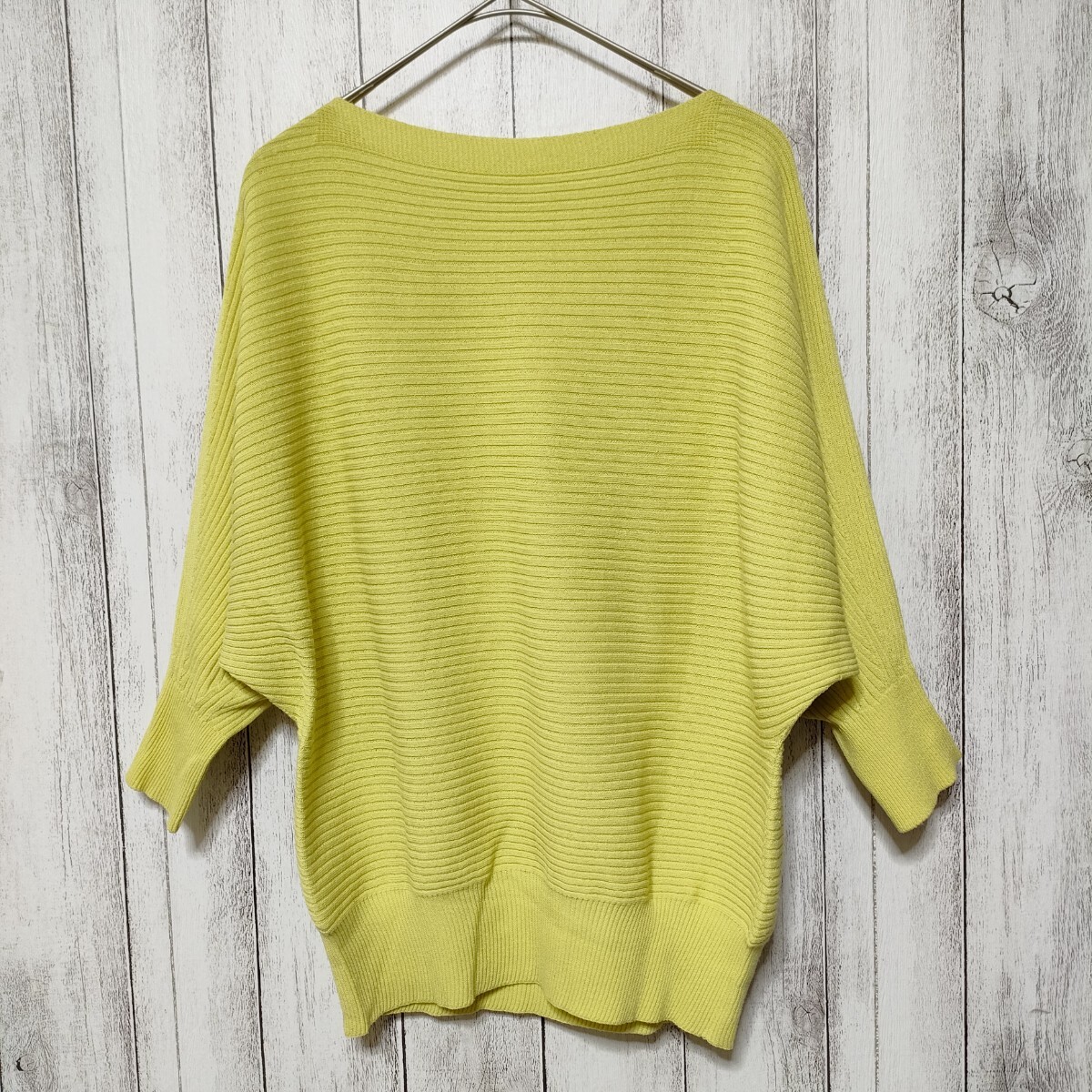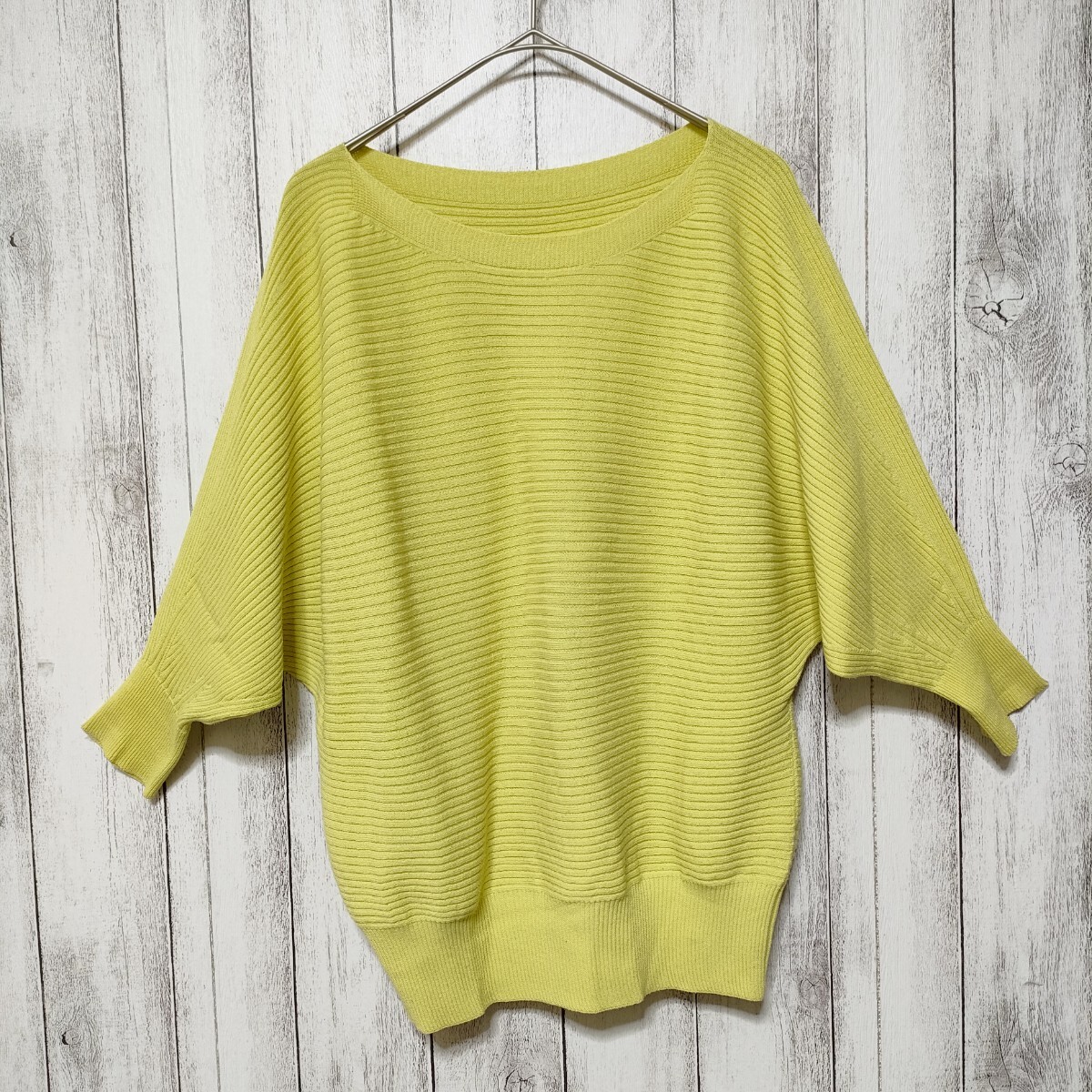 リブの横使いのボートネックのドルマンスリーブプルオーバー。