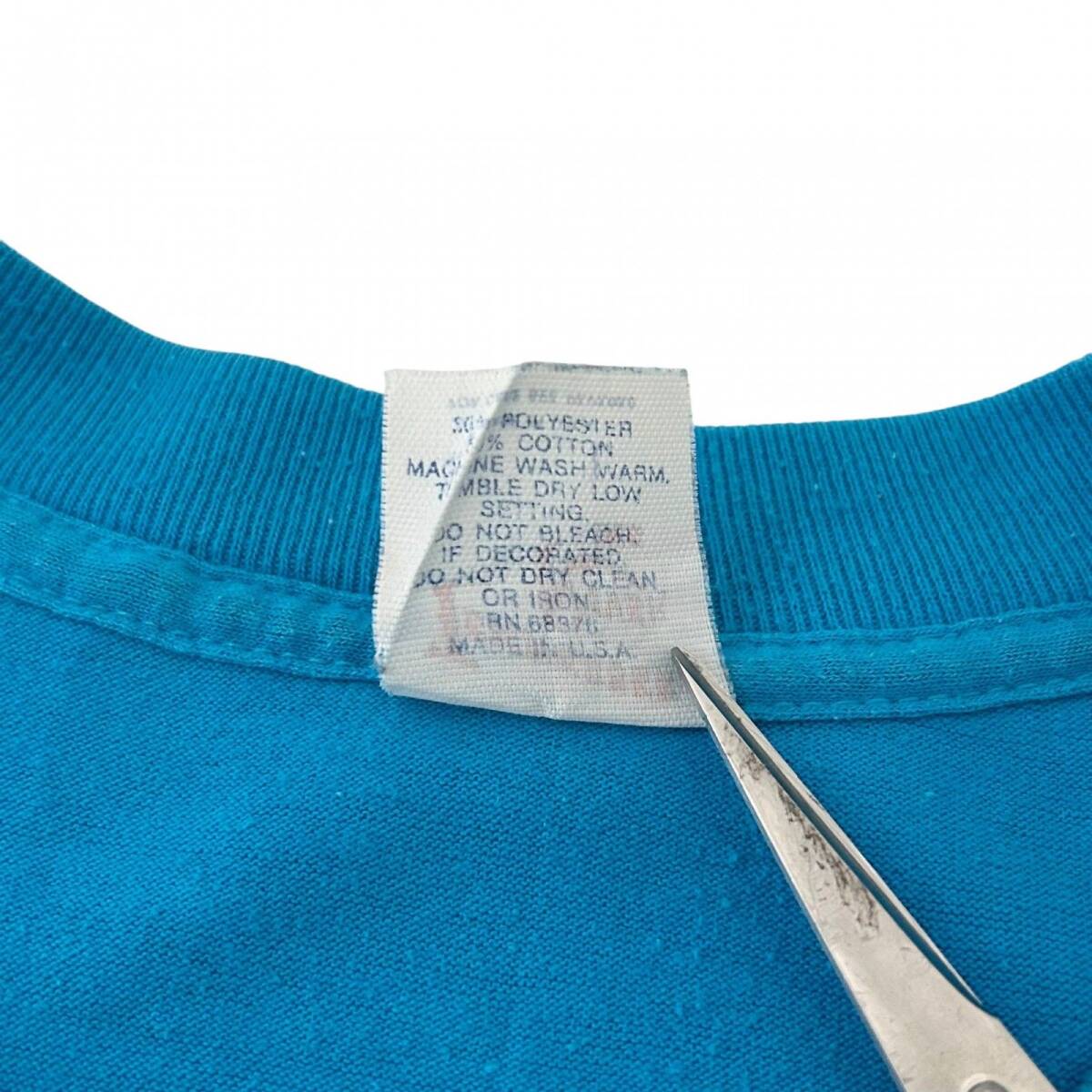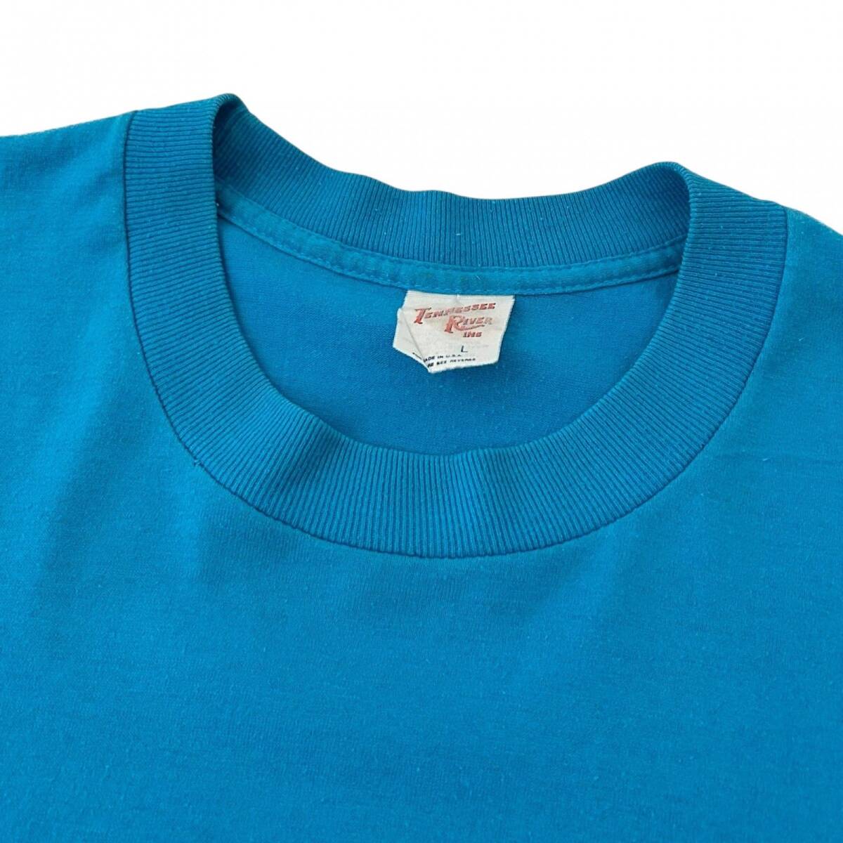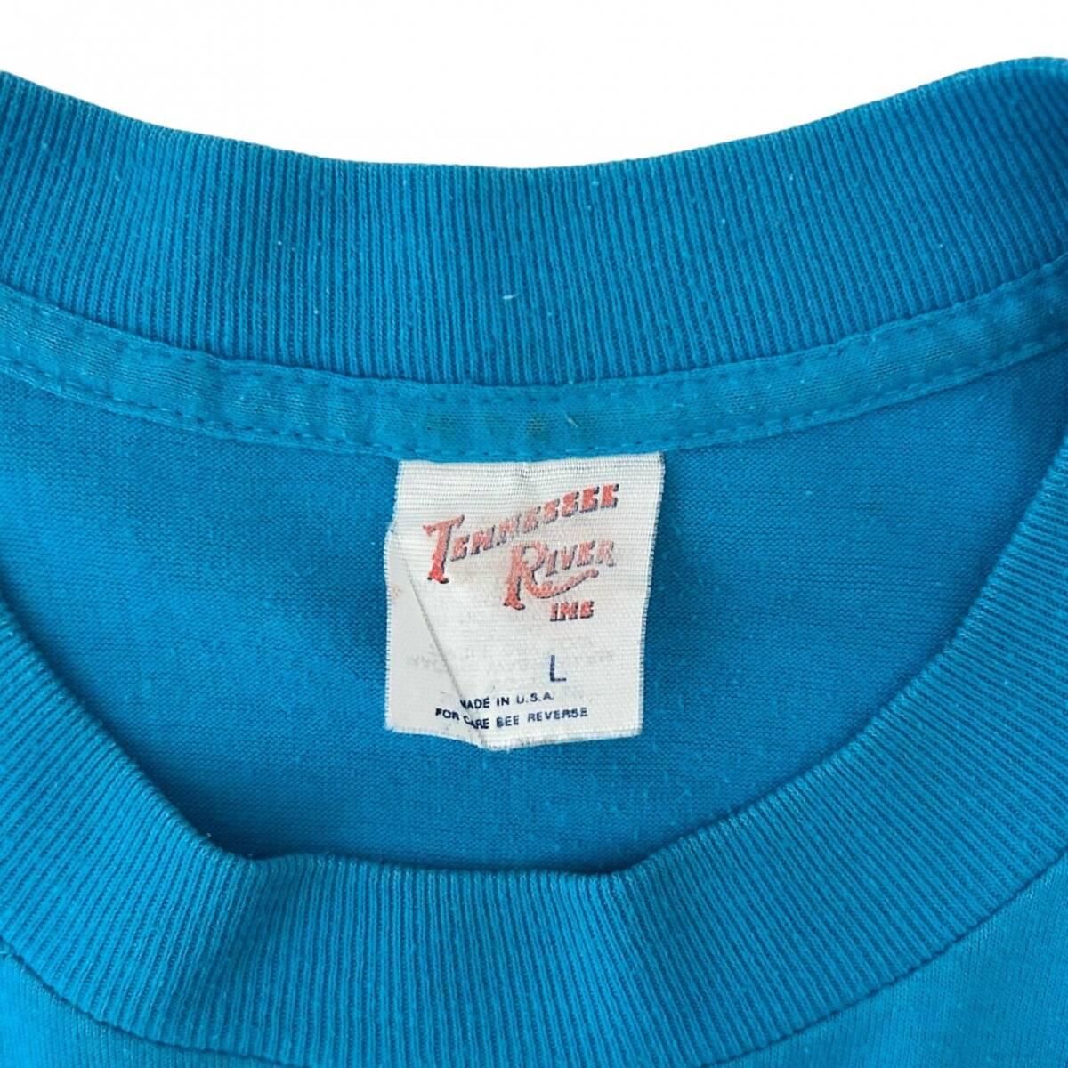L 90s ヴィンテージ USA製 CHICAGO 心電図 ロゴ デザイン Tシャツ シングルステッチ コットンポリ 水色 白