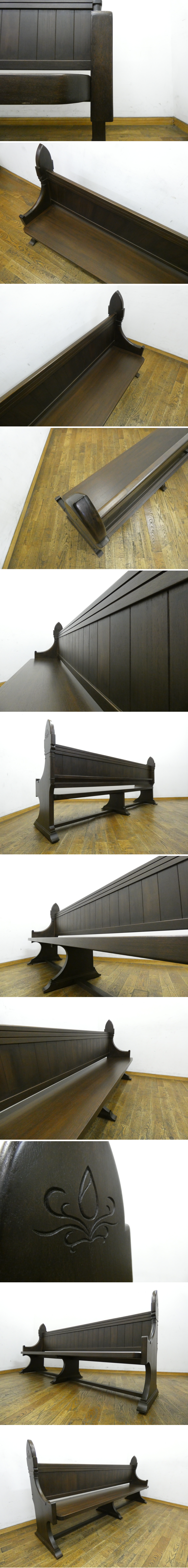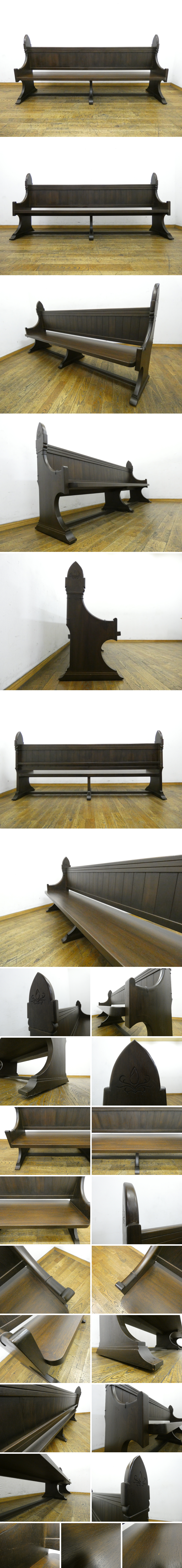 高貴な深みに艶やかな温かみをもつ木肌と、豪華なや彫刻との絶妙なコントラストのチャーチベンチになります。