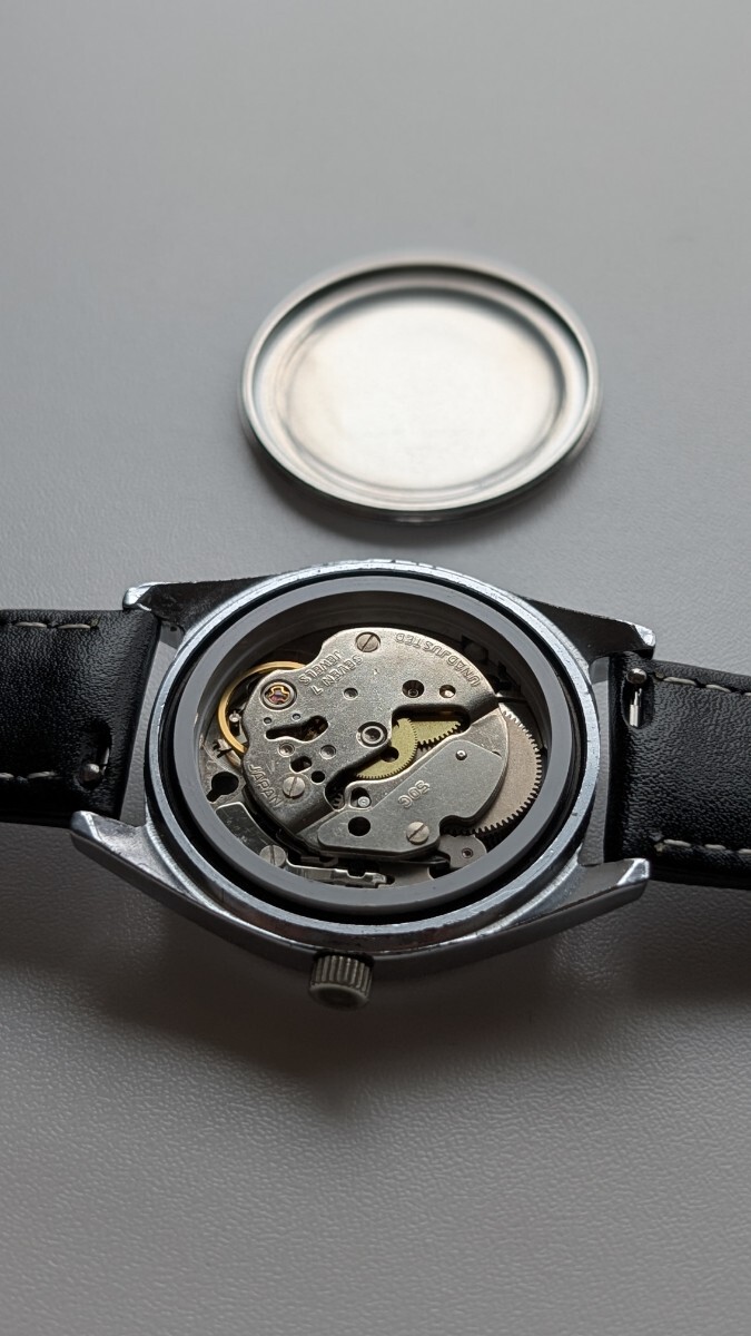 本体ケース径は竜頭を含まず横幅約34.6mmでヴィンテージのメンズサイズです。