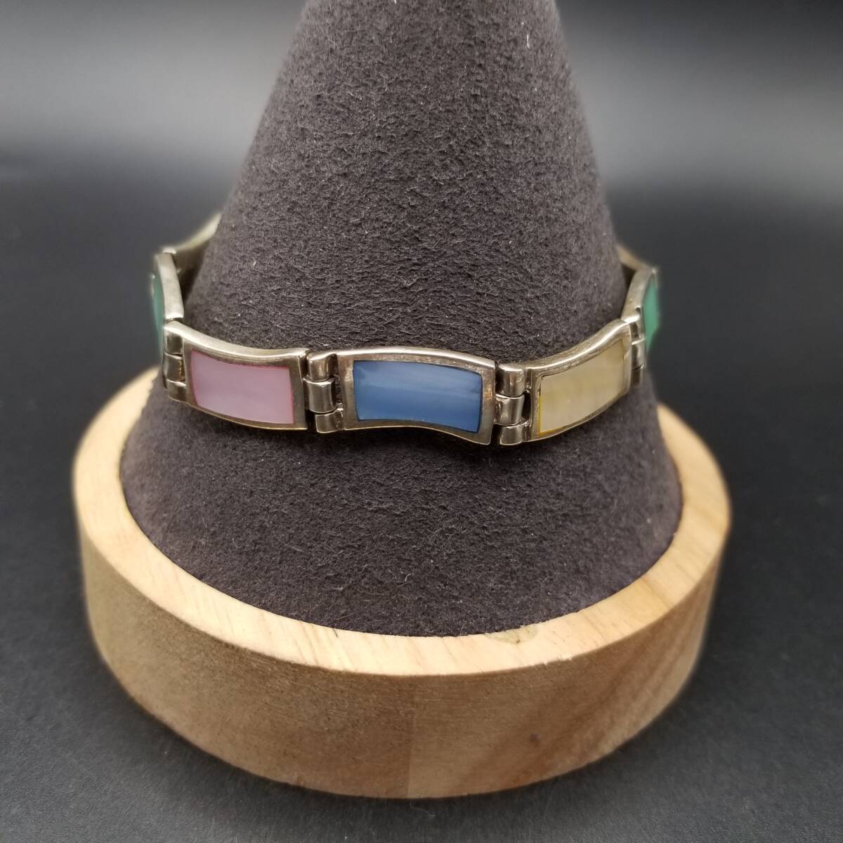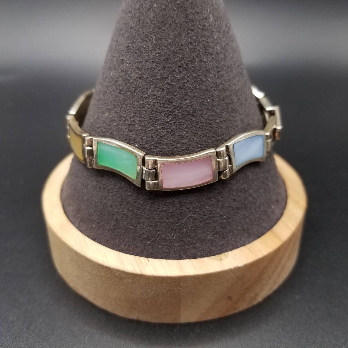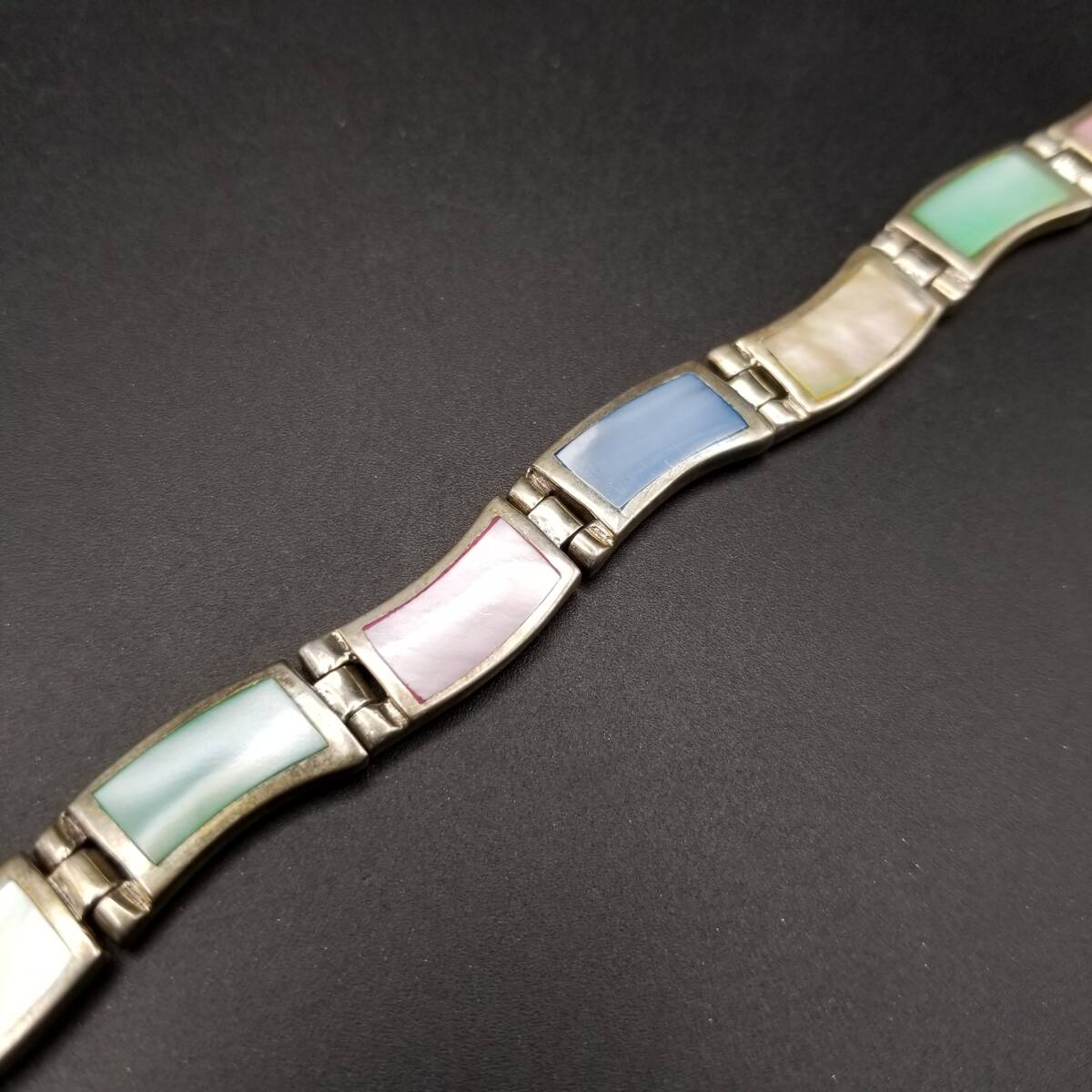 マルチカラー マザーオブパール ウェーブ パネルチェーン ヴィンテージ ブレスレット 925 シルバー 銀 レトロ キュート 存在感 Y23-S