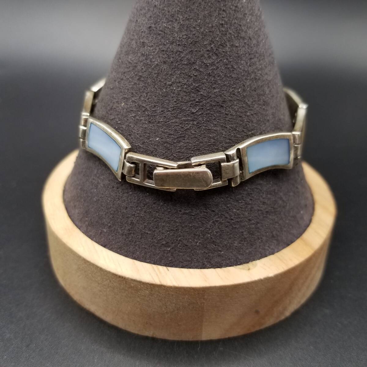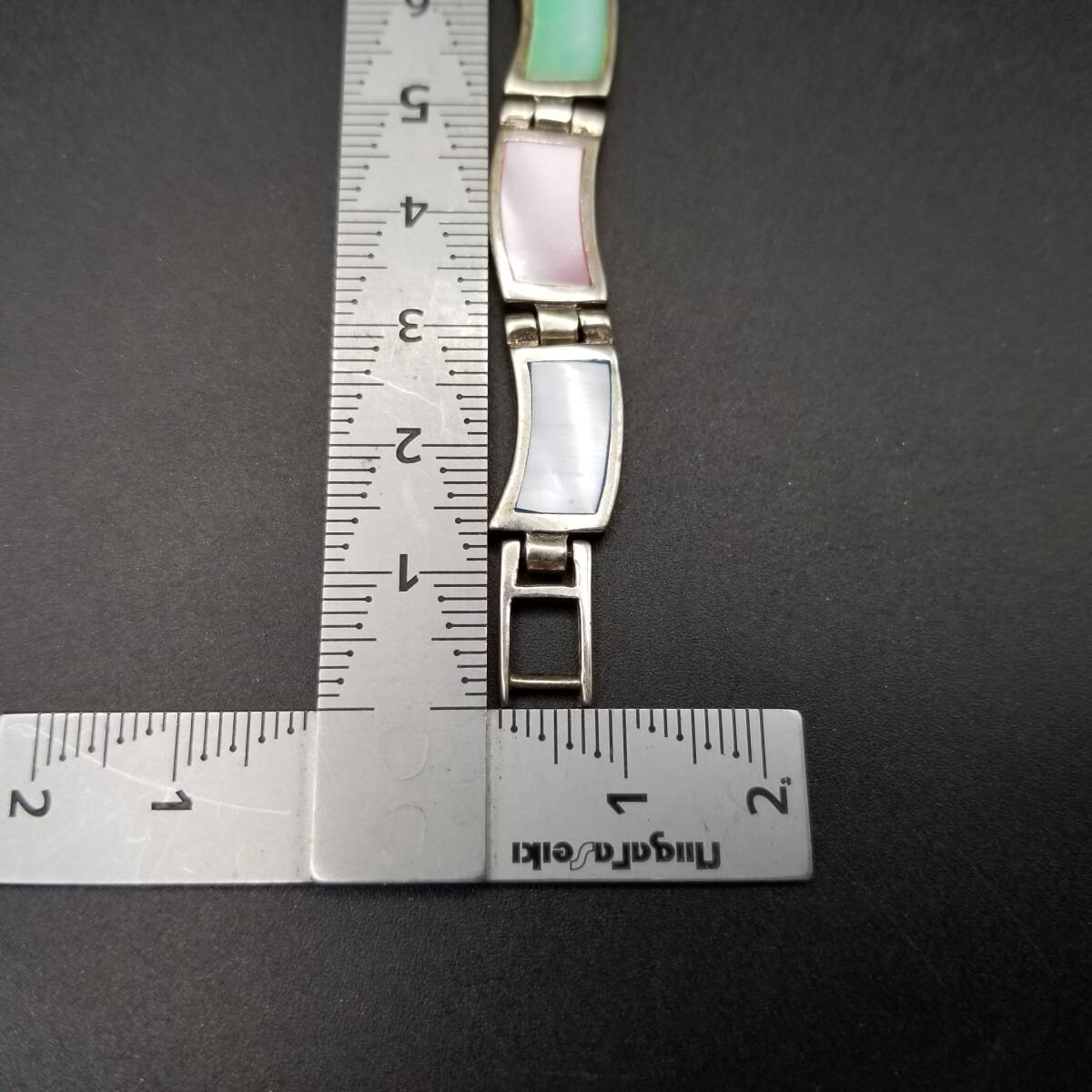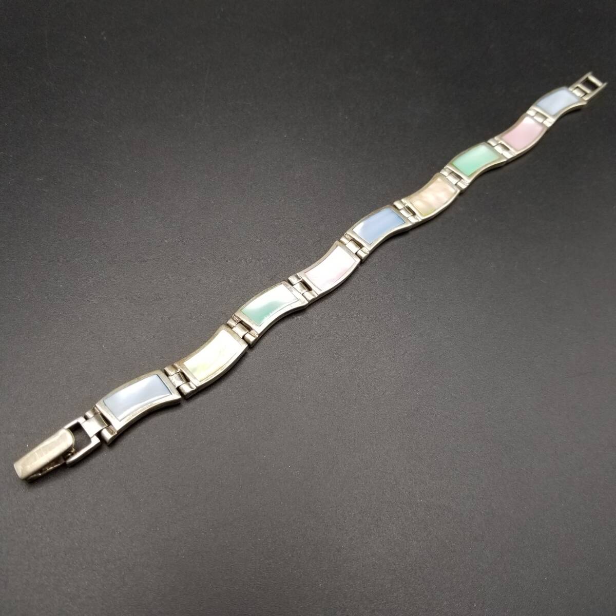 マルチカラー マザーオブパール ウェーブ パネルチェーン ヴィンテージ ブレスレット 925 シルバー 銀 レトロ キュート 存在感 Y23-S