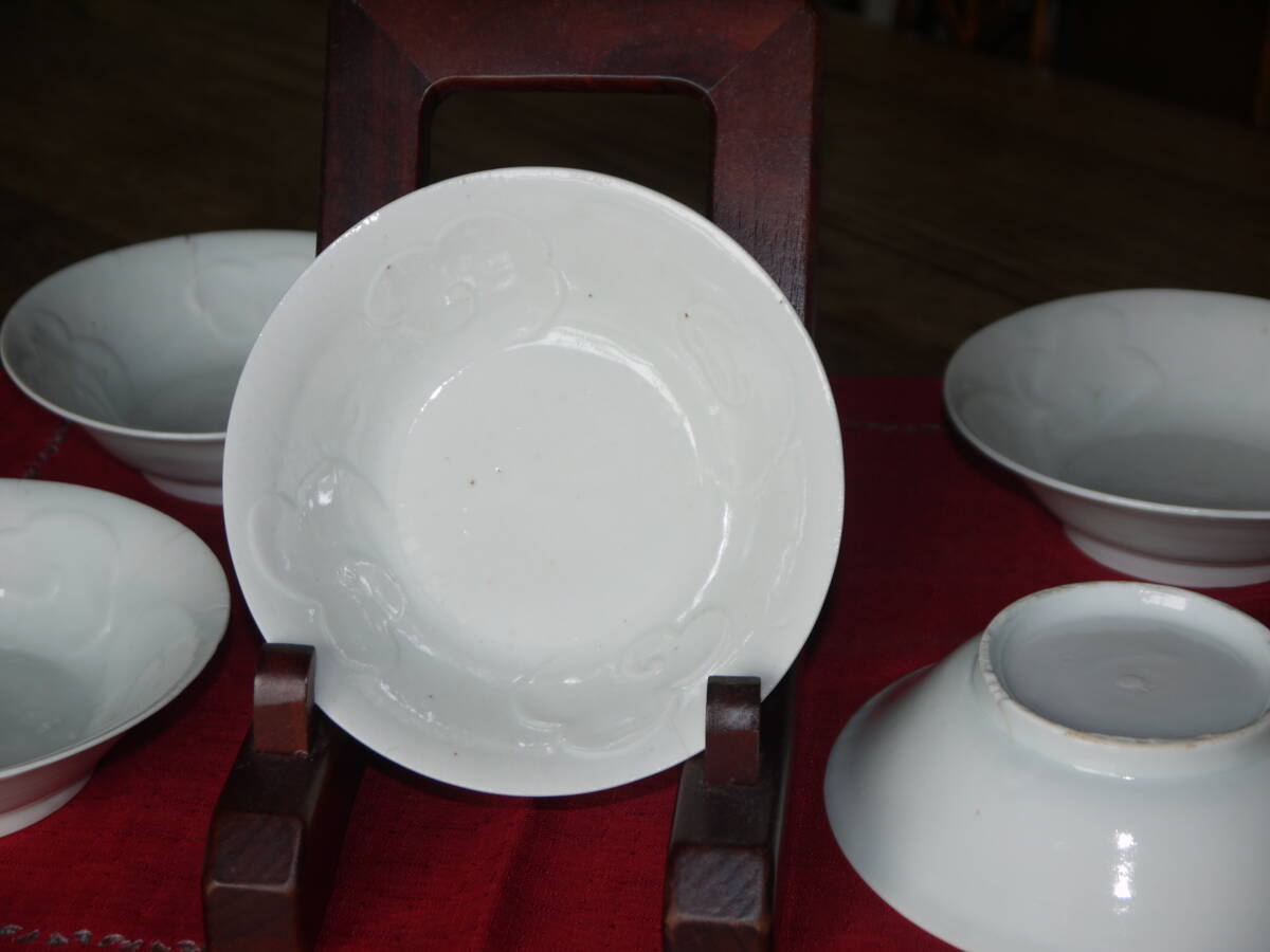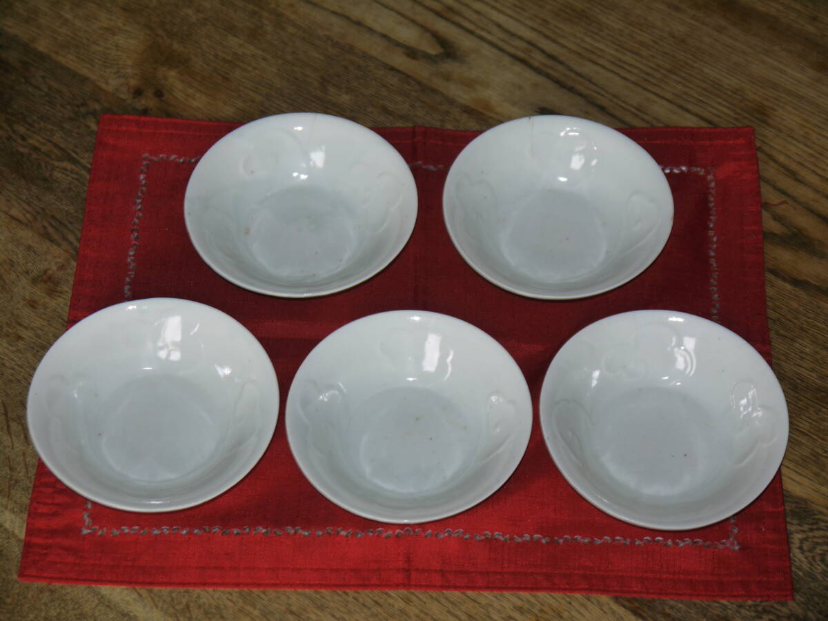 | 江戸前期 古伊万里 柿右衛門白磁如意頭文陽刻膾皿 5客 | |