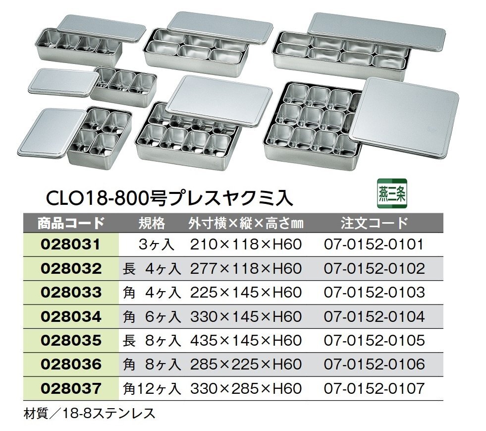 ★ヤクミ入調味料入バット4個入ミニ長型18-8ステンレス製日本製新品
