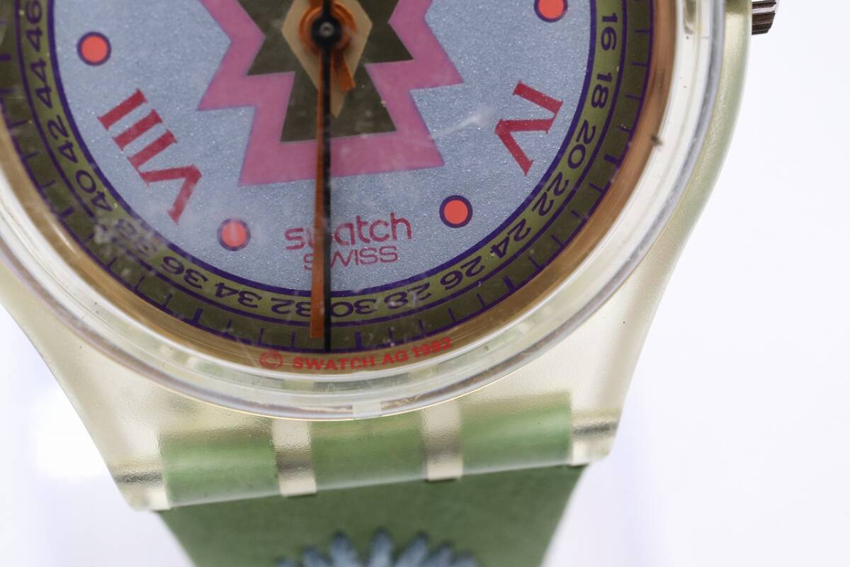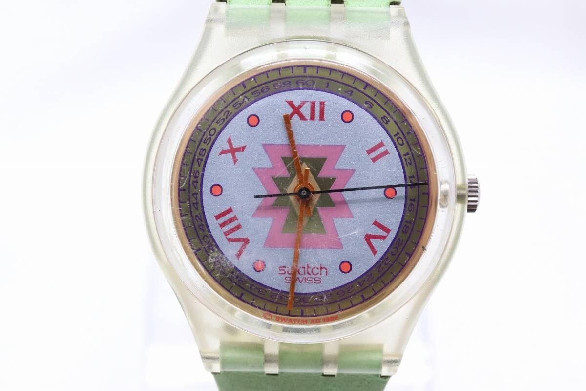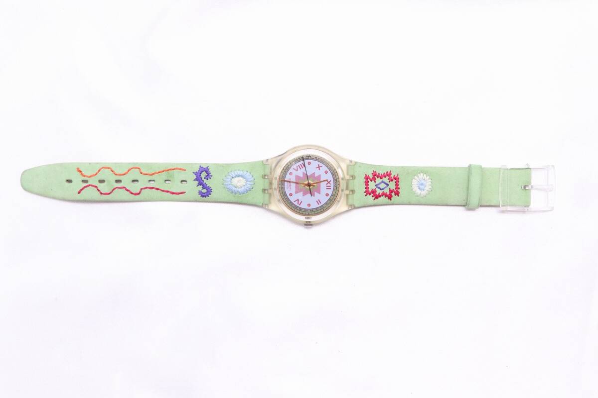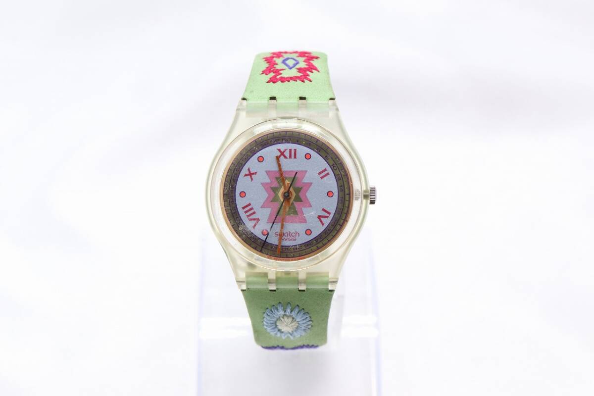【W243-32】動作品 電池交換済 swatch スウォッチ AG1992 腕時計 刺繍 革ベルト レディース【送料全国一律185円】