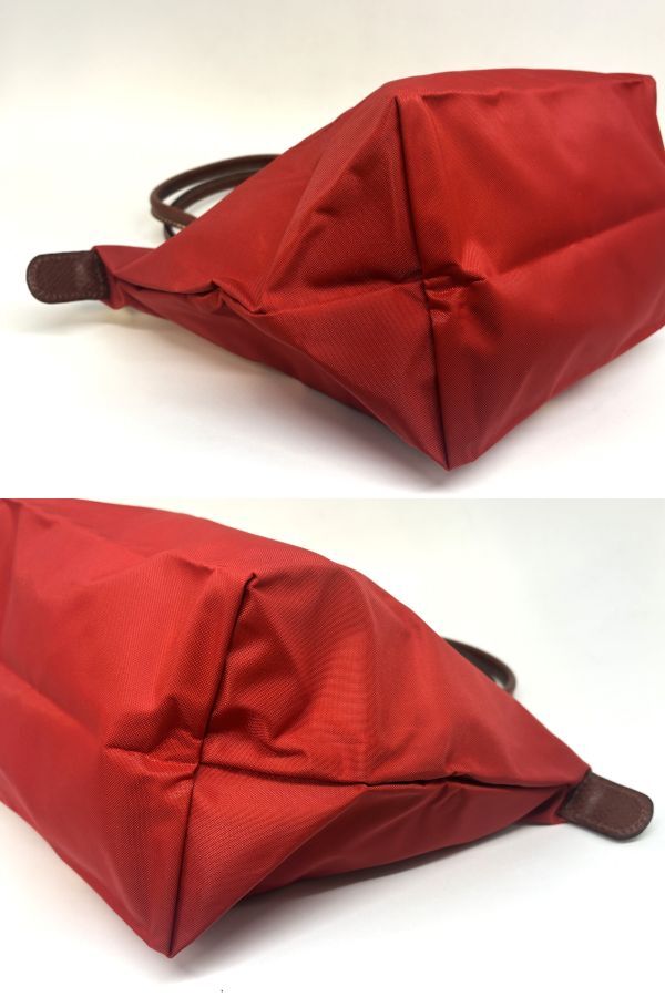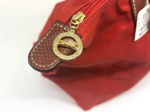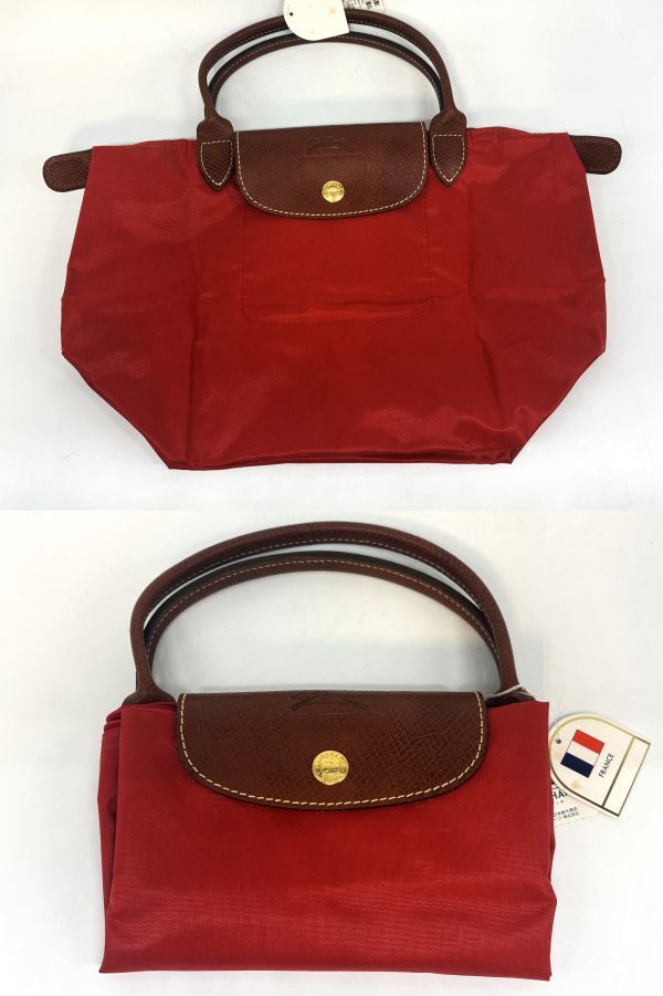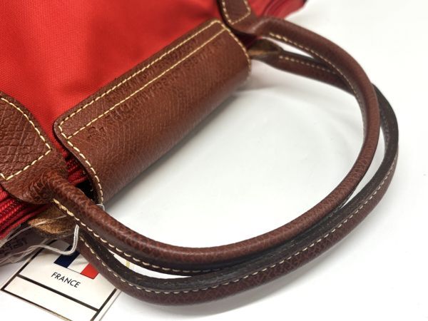 ロンシャン LONGCHAMP 折り畳み トートバッグ レッド×ブラウン ナイロン×レザー 未使用保管 タグ付き