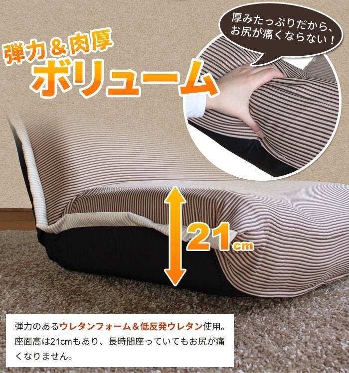 | 商品説明 | ウレタンフォーム&低反発ウレタン使用で、座面高は21cmもあり、長時間座っていても疲れません。 【仕様】 ▼ サイズ 約幅92×奥行92~122×高さ67cm ▼ 座面高 約21cm ▼ 重量 約4.6kg ▼ 材質 ポリエステル100%、ウレタンフォーム、スチールパイプ ▼ カラー ブラック、ブラウン、アイボリー ▼ 生産国 日本 ▼ 組立区分 お客様組立品 |