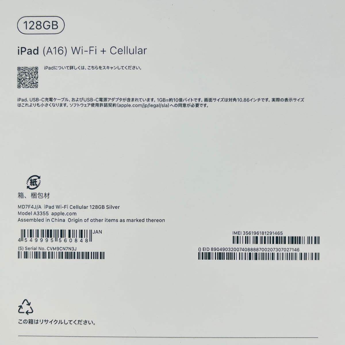 新品未開封 simフリー ipad 第11世代 本体 128gb wifi+cellular silver 【a-998】