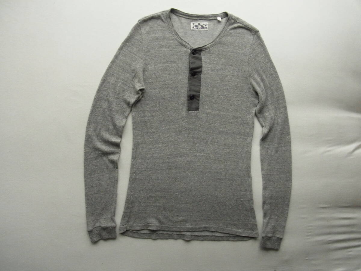 ハリウッドランチマーケット  オクラのガーゼ天竺素材でヘンリーネックのTシャツになります。USEDで着用感は御座いますが、特に目立ったダメージ等は御座いません。