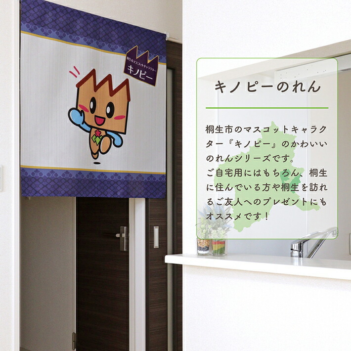 群馬県桐生市のゆるキャラキノピーののれんです♪仕切りや目隠し、タペストリーとしてもご使用いただけます。
