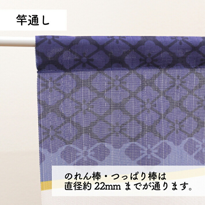 ■割れ目のないのれんです。真ん中のカットラインに沿ってハサミで切り込みを入れることもできます。竿通し部分まで切らないようにご注意ください。