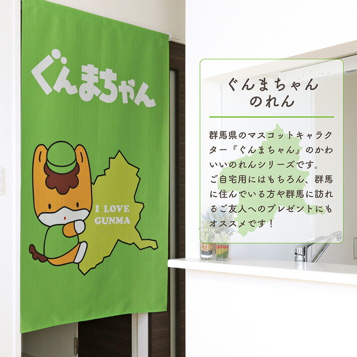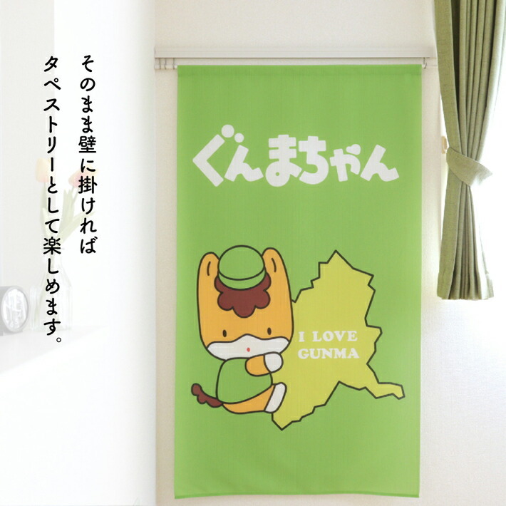 群馬県のご当地キャラぐんまちゃんののれんです♪仕切りや目隠し、タペストリーとしてもご使用いただけます。