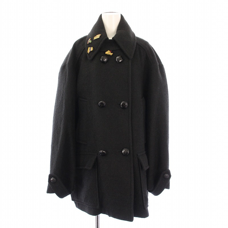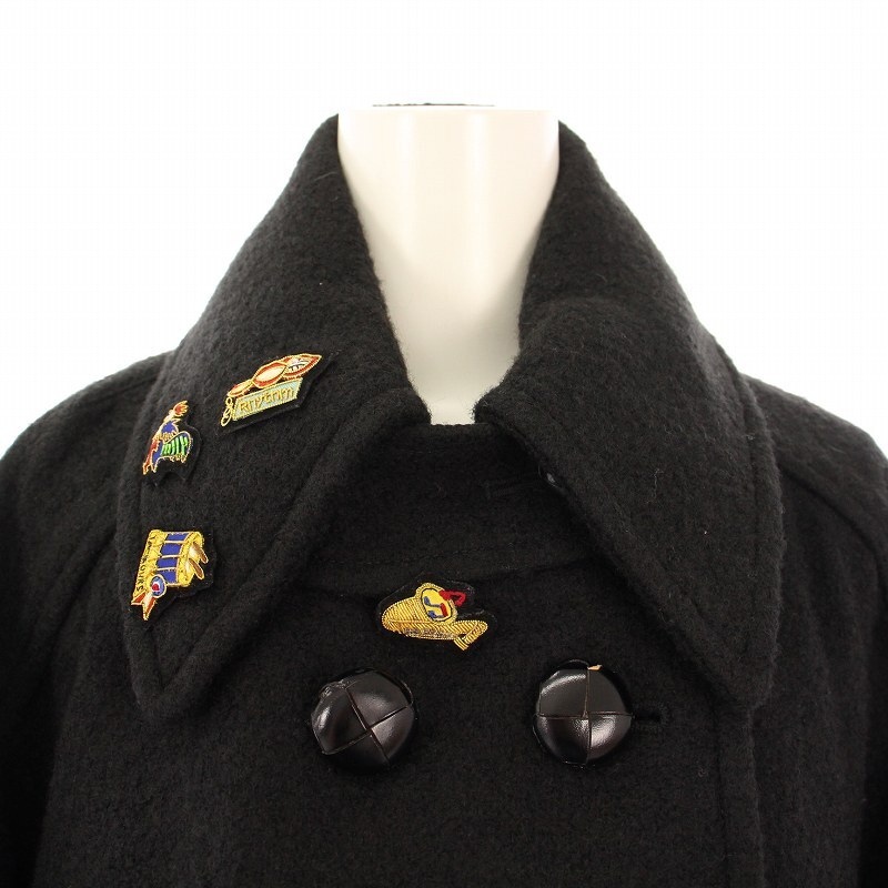 イザベル マラン エトワール ステンカラーコート アウター ダブル ミドル丈 ピンバッチ 装飾 ウール モヘヤ混 アルパカ混 40 黒