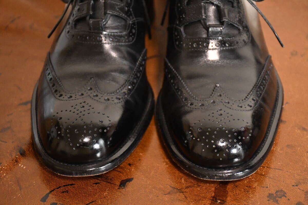 アッパーはブラックで、普遍的な黒革靴と同じように綺麗目カジュアルスタイルに合わせてもいいですし、クラシカルなセットアップでも、モード系に振っても良し、幅広く活躍できるかと思います。