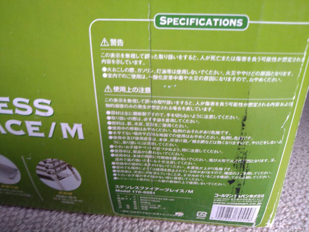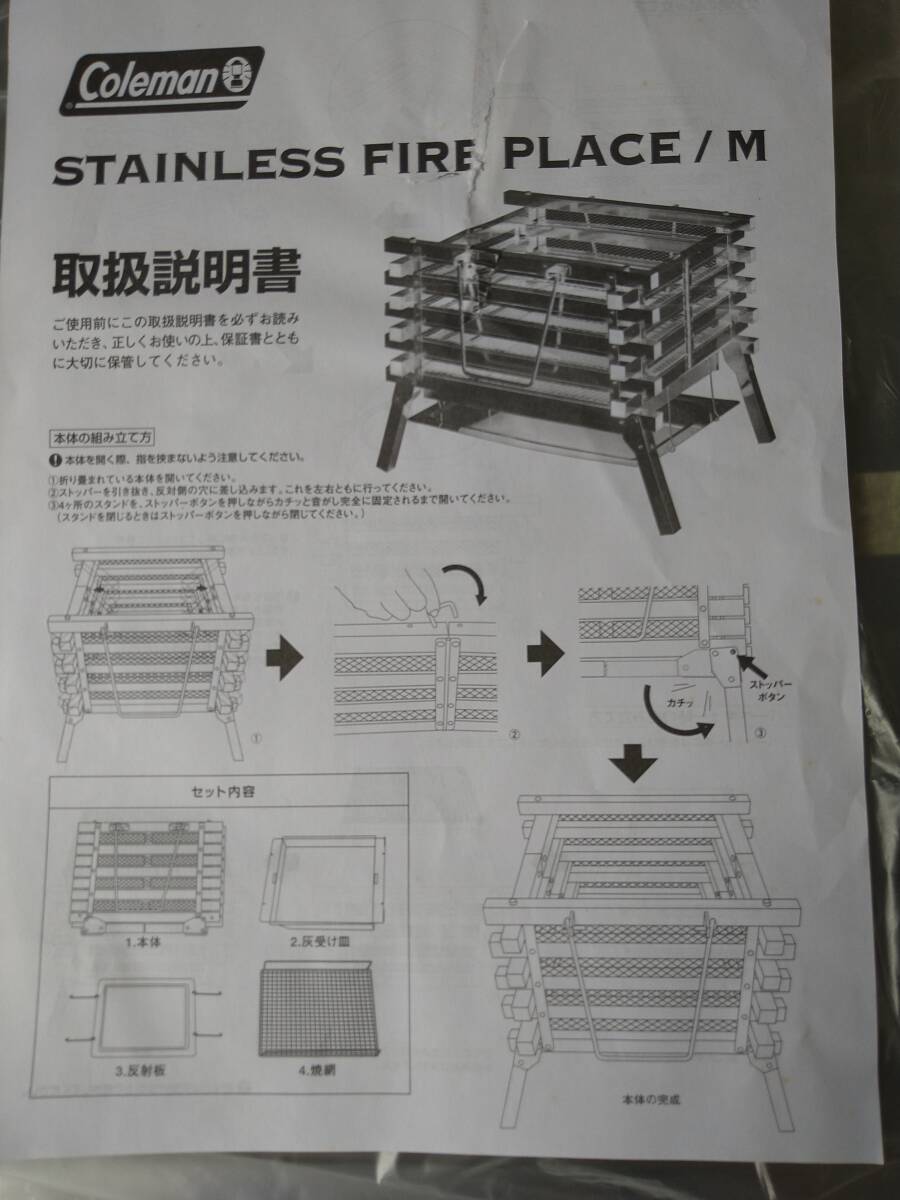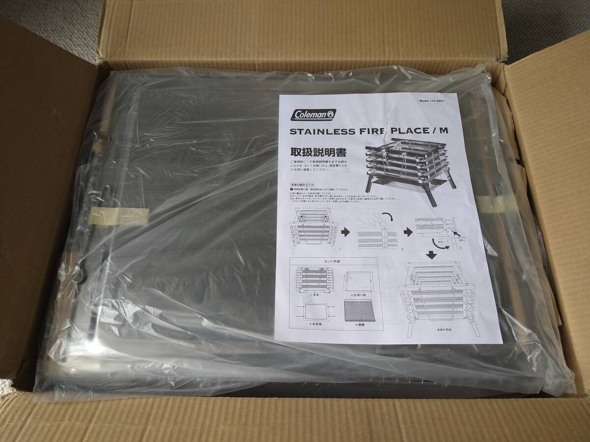 あまり見かけない未使用のコールマンの焚き火台、 ステンレス ファイアープレイス M 型番170-9251です。