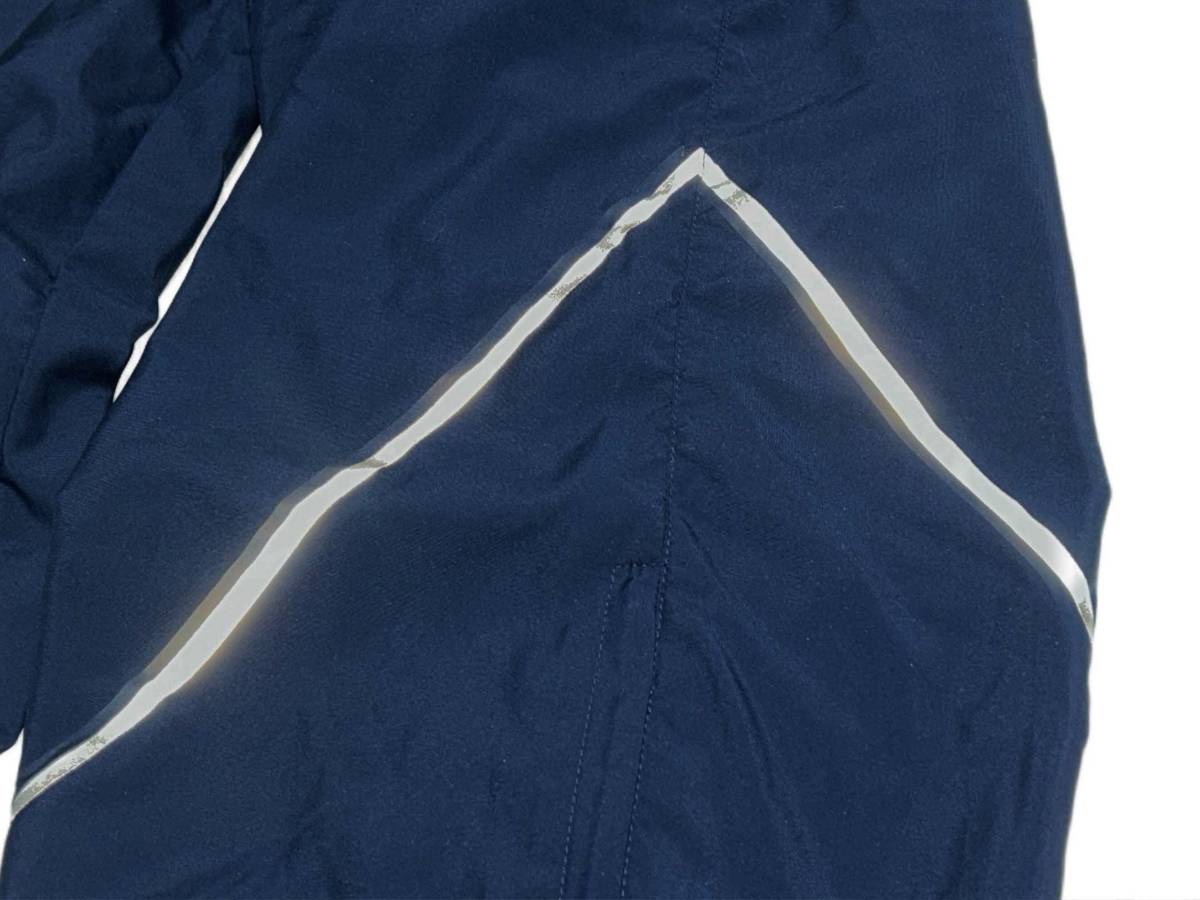★色はエアフォースブルー リフレクタープリント(反射素材) 100%NYLON 裏地は総メッシュ素材 ウエストと裾にはゴムシャーリングで、裾のファスナーで快適な着脱可能 ウエストにはドローコードもあり