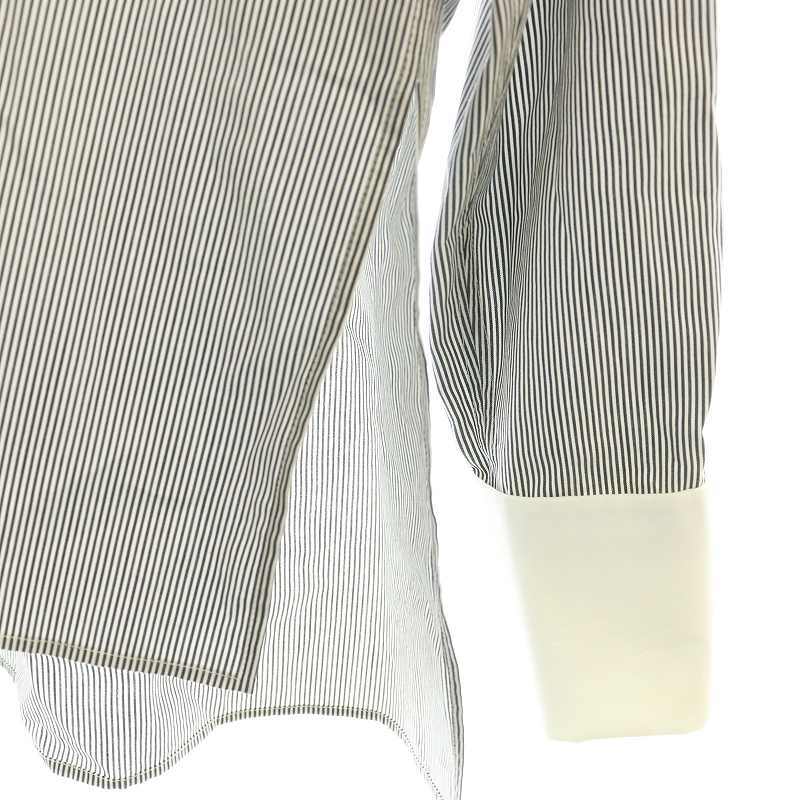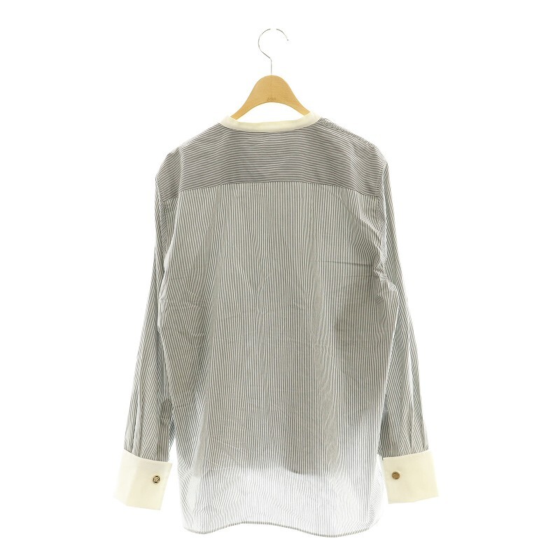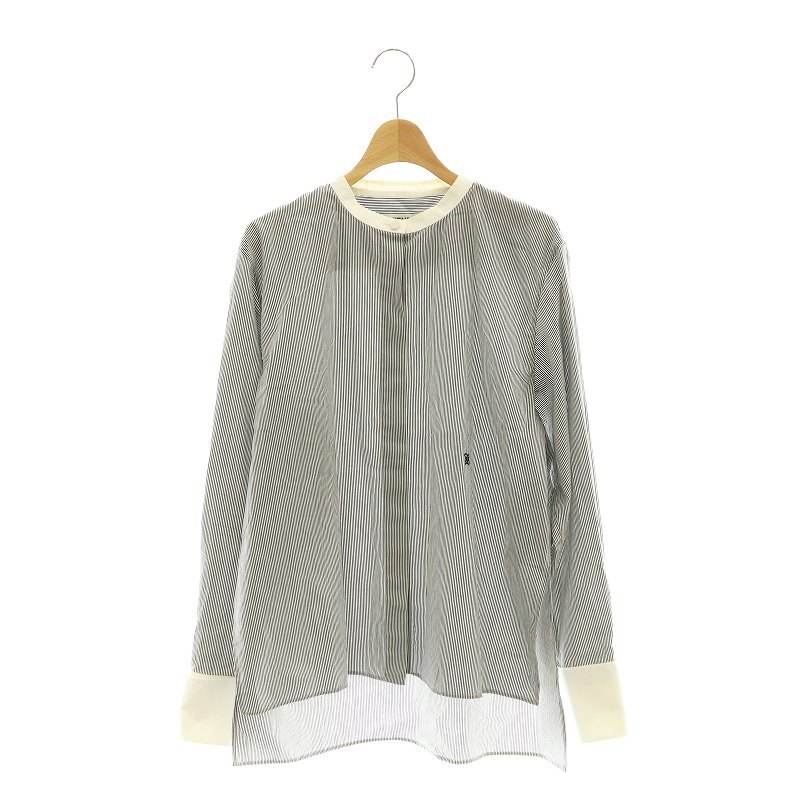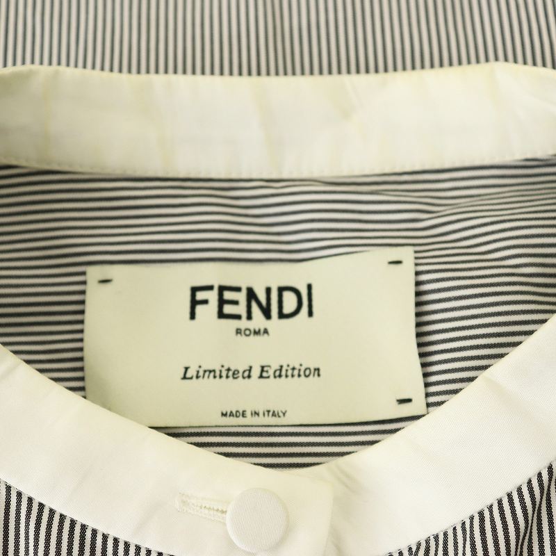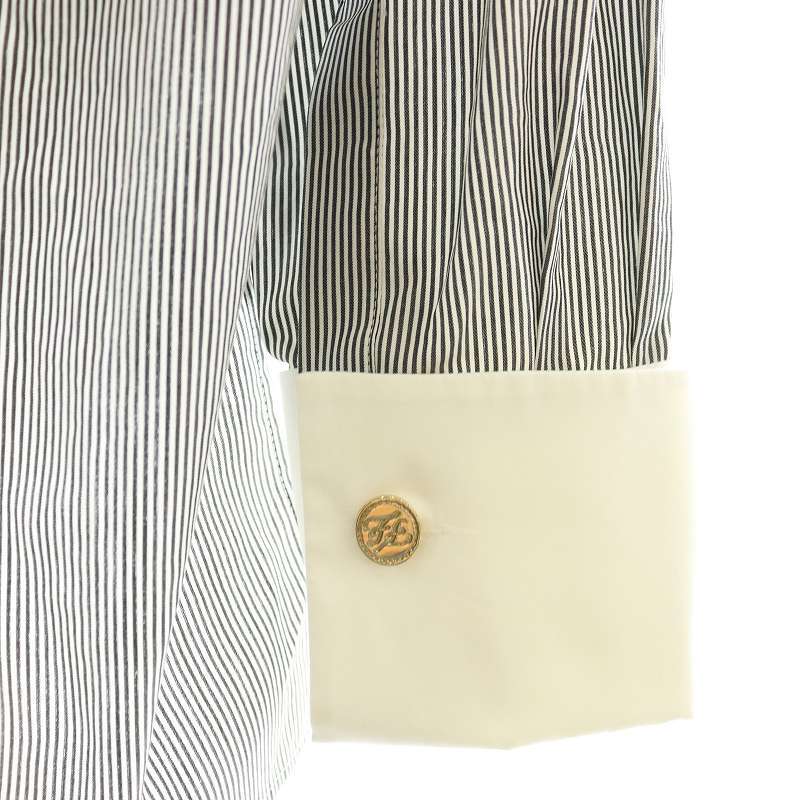 フェンディ FENDI FS7482 ADA6 カリグラフィロゴ刺繍 ストライプシャツ バンドカラー IT42 グレー 白 /MI ■OS レディース