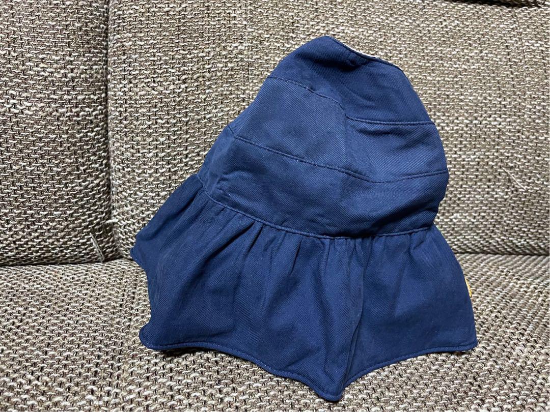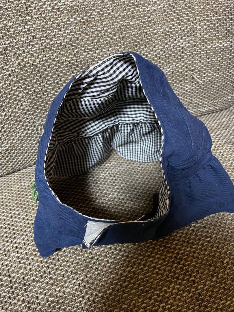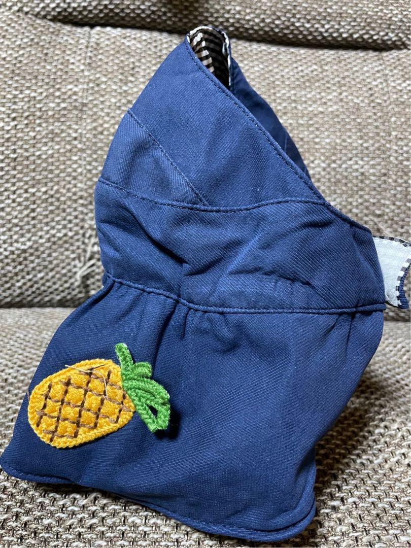 ネイビーのパイナップル刺繍サンバイザー、可愛らしいデザイン。