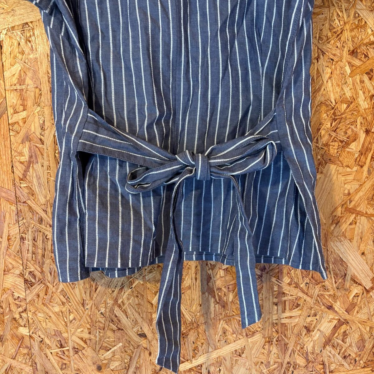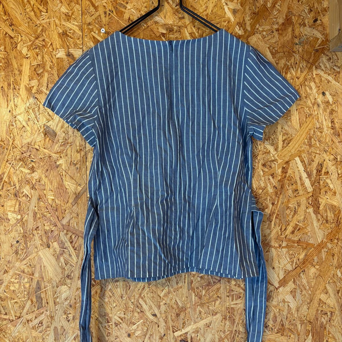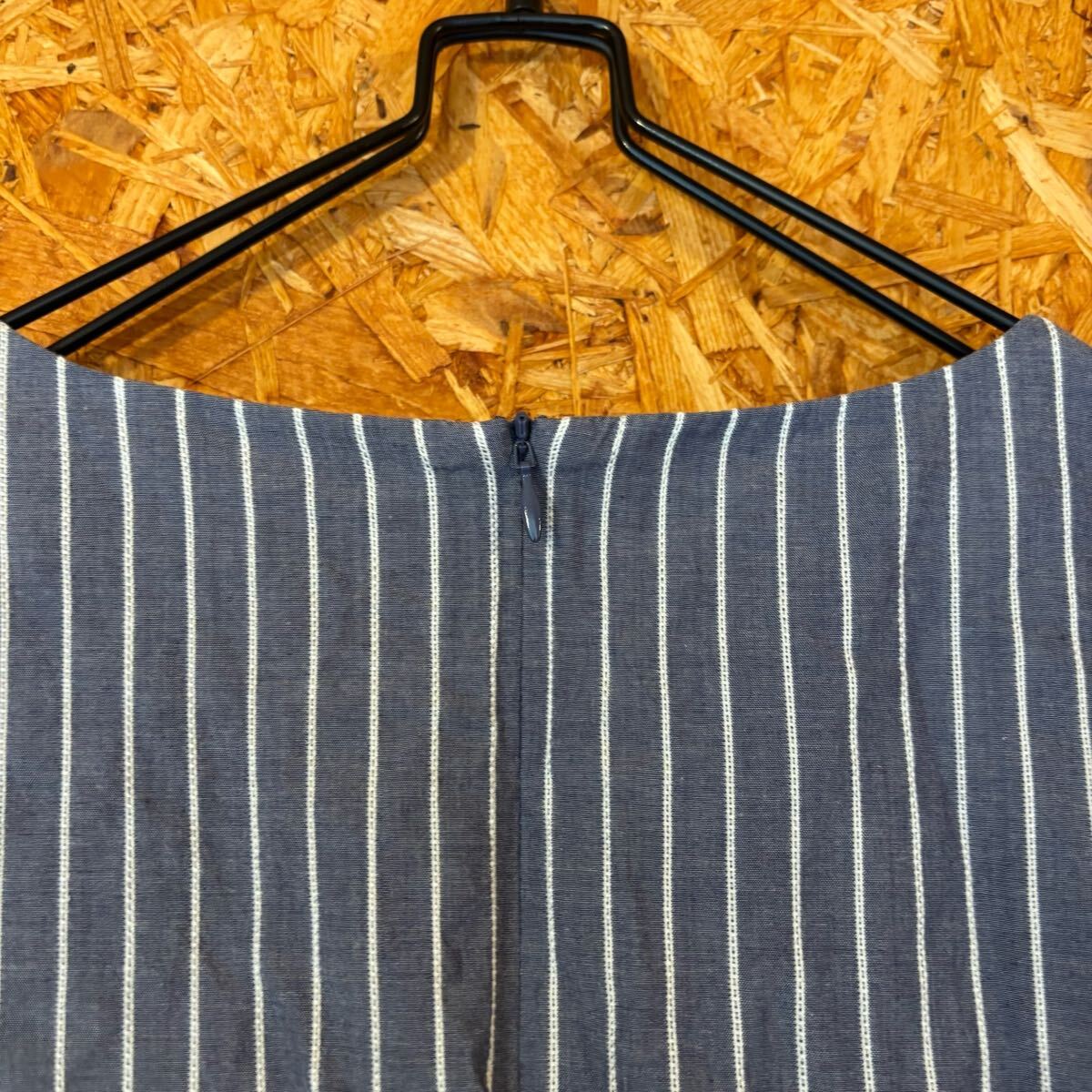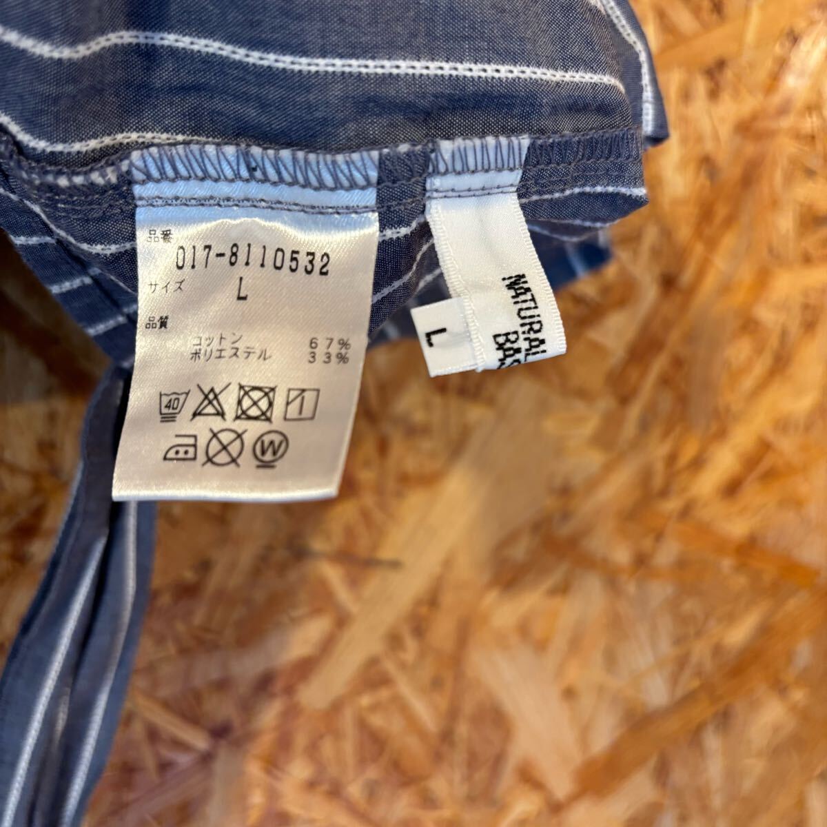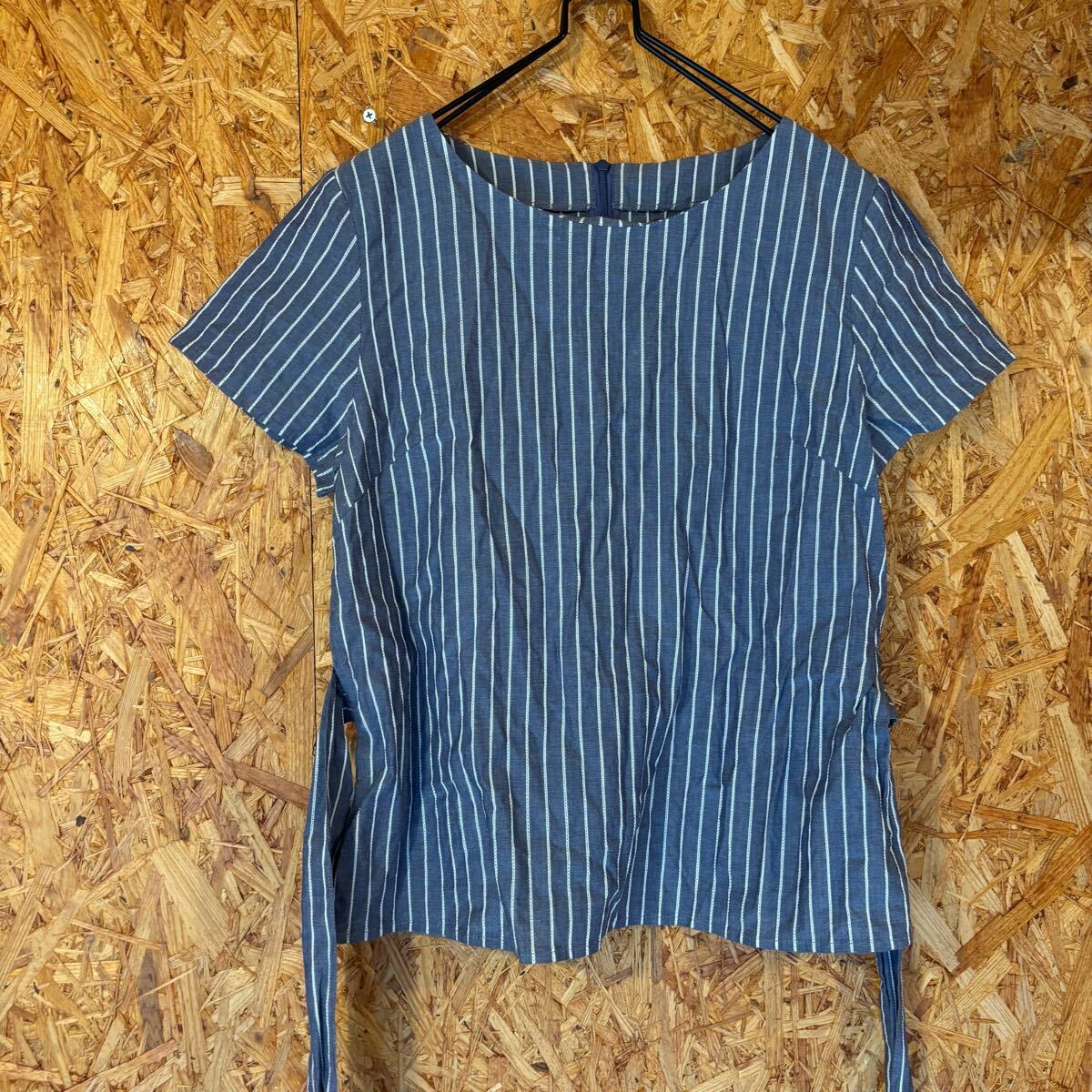 美品 NATURAL BEAUTY BASIC カットソー ストライプ 半袖 トップスレディース 刺繍 ブルー 腰リボン 4679