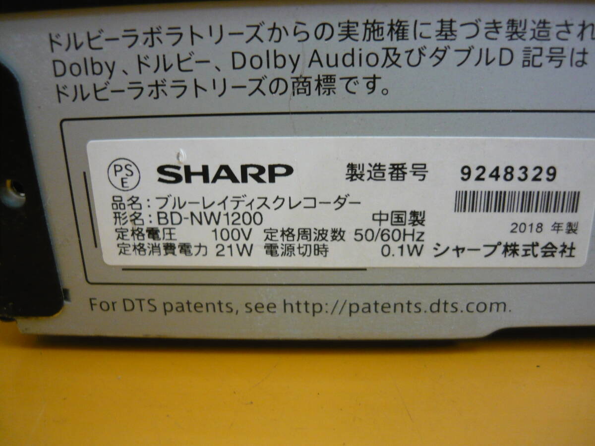 【Y-254】SHARP ブルーレイレコーダー BD-NW1200 ジャンク ※トレイ開きません