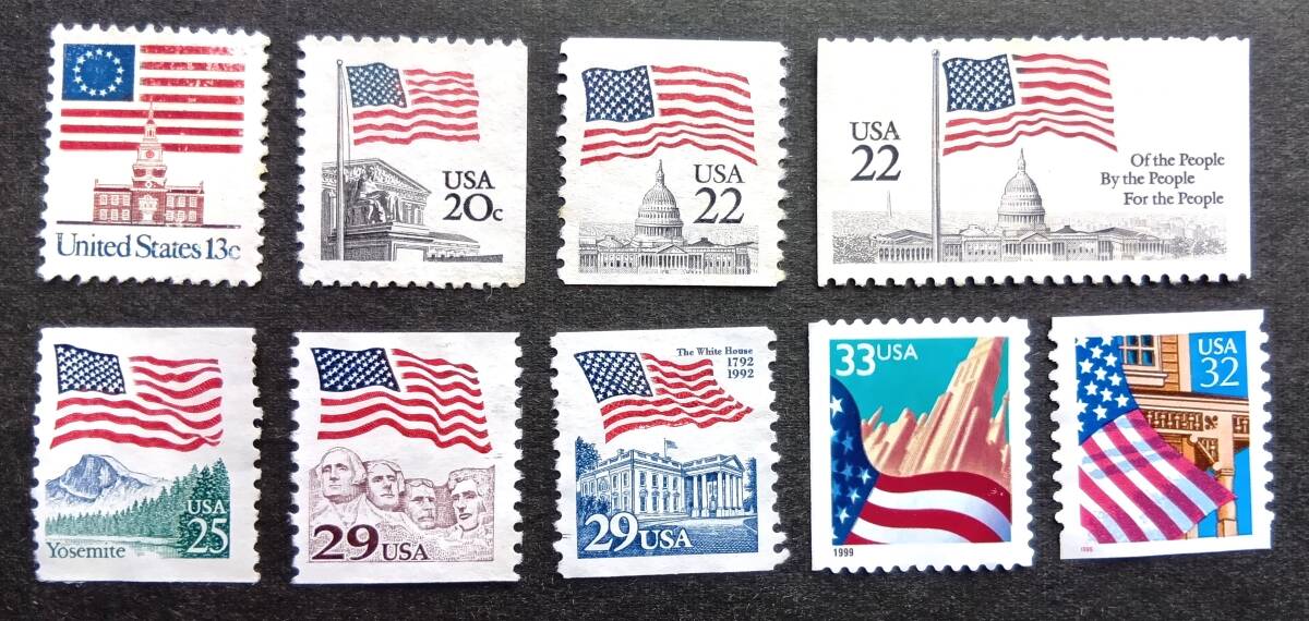 【未使用】 アメリカ 星条旗切手 9種類