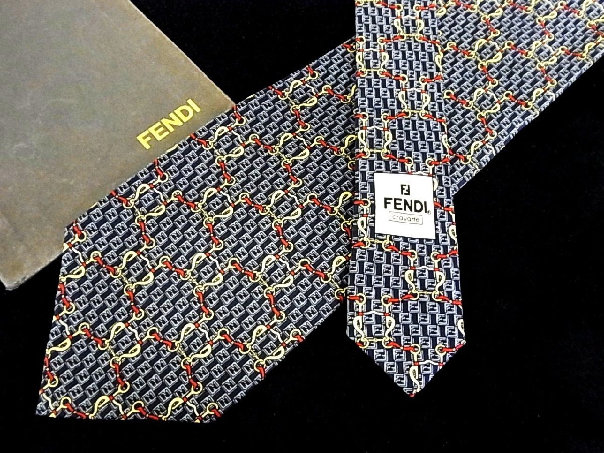 ♪今週の特売980円~♪4096♪良品【FENDI】フェンディ【金具 FFロゴ 柄】ネクタイ♪