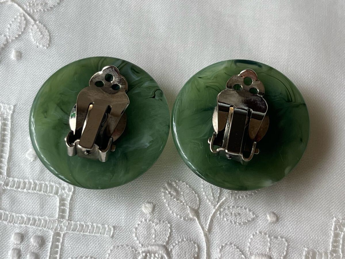 ** マーブルトーンのラウンドモチーフがレトロムード溢れる70年代頃の素敵なヴィンテージイヤリングです