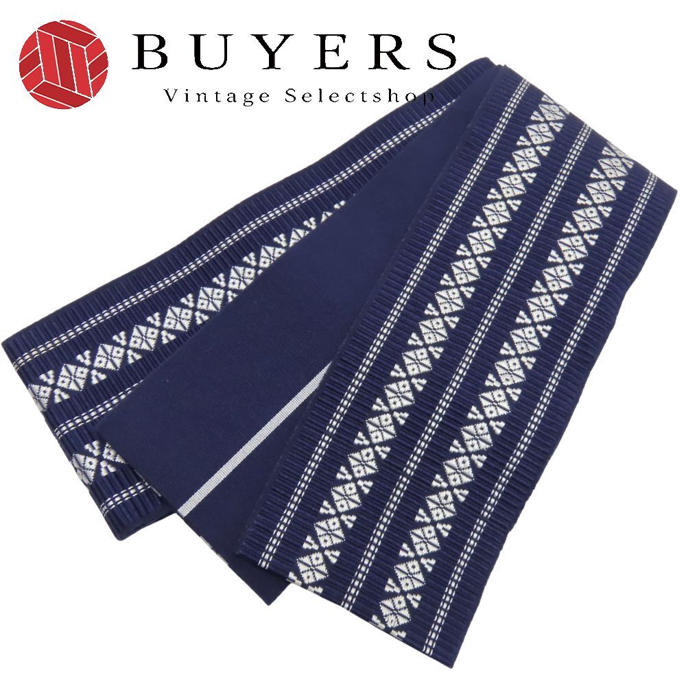 中古 男帯 正絹 群青色 紺 白 献上柄 角帯 リバーシブル 和装 呉服 和服 きもの メンズ 男性