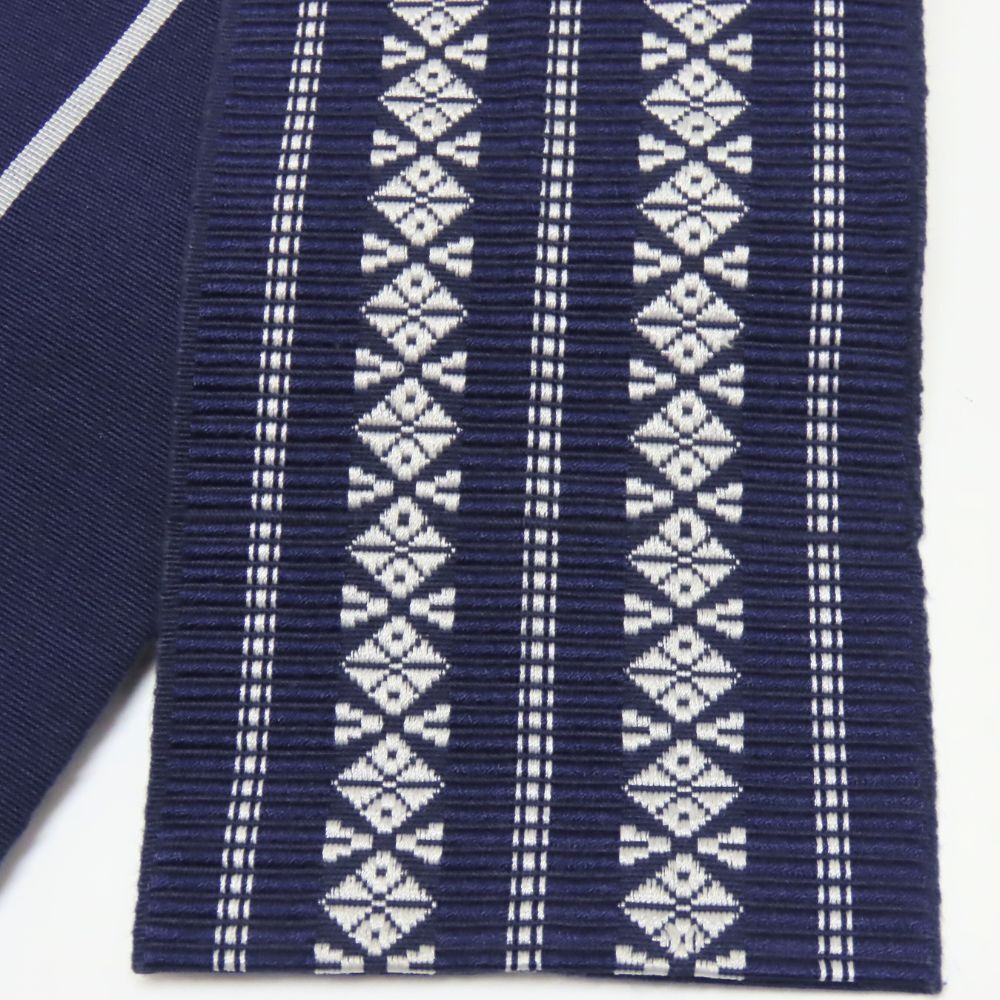 品名 【中古】 男帯 正絹 群青色 紺 白 献上柄 角帯 リバーシブル メンズ 男性