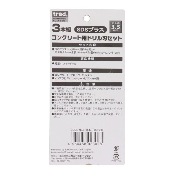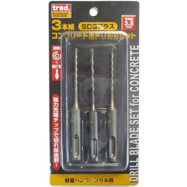 SDSコンクリート用ドリル刃セット3本組 TCD-335 ※S71427【クリックポスト・メール便 送料無料】