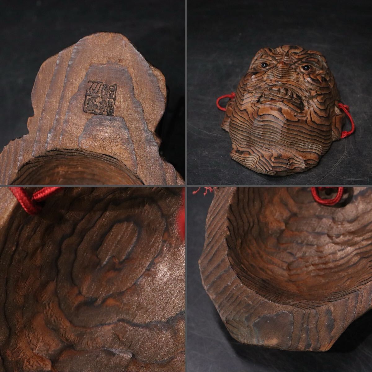 | 時代 木彫 面 2点 仁王 大黒天 / 木工芸 検索: 伎楽面 能面 翁 舞楽面 民藝 .B598 |