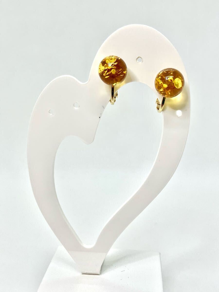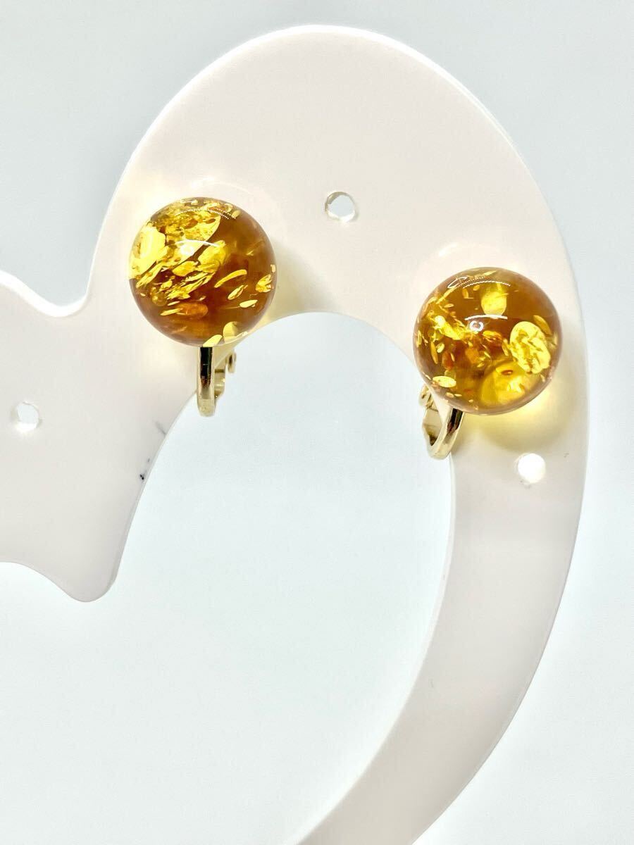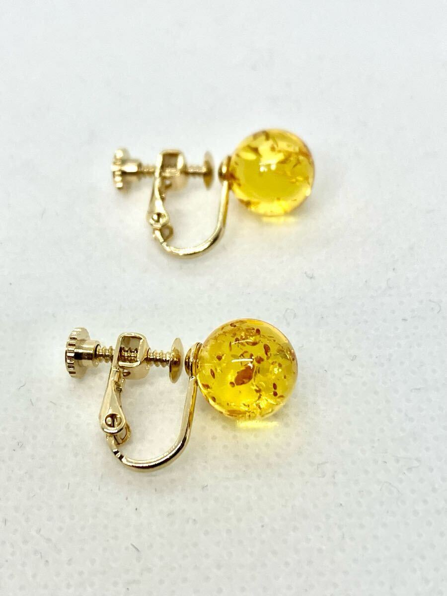 美しい約9㎜玉の真円琥珀のネジバネ式イヤリングです。