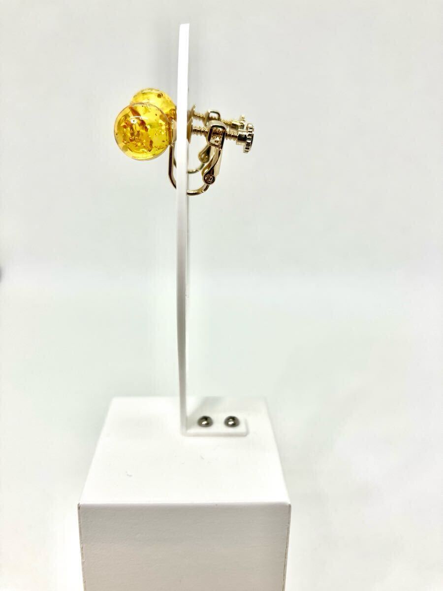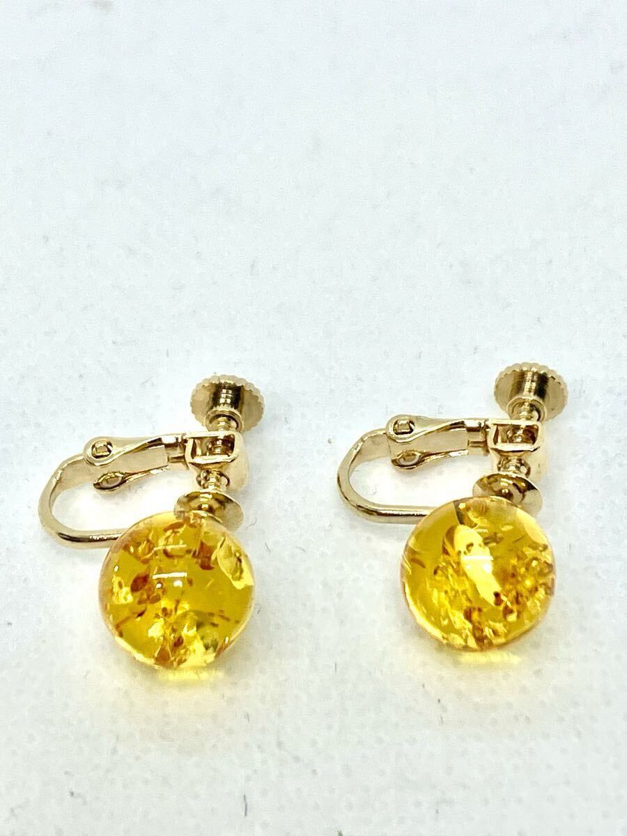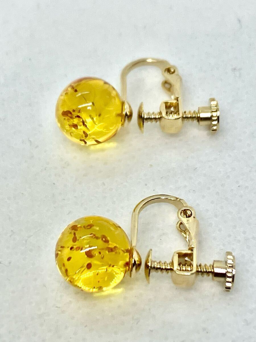 美しい約9㎜玉の真円琥珀のネジバネ式イヤリングです。