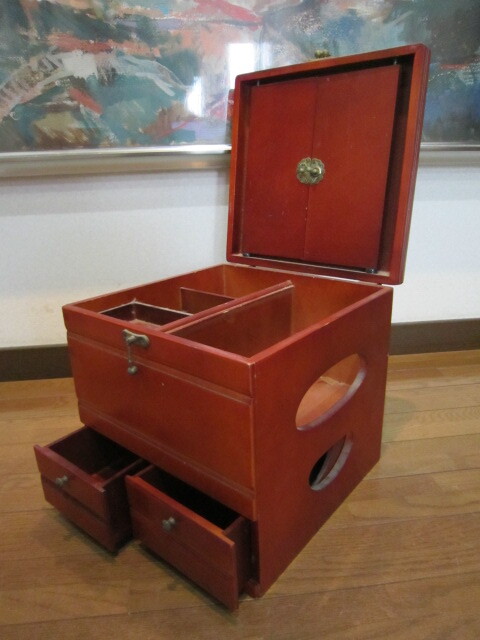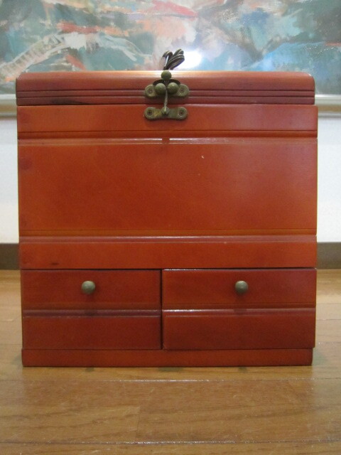 アンティーク レトロ 宝石箱 化粧箱 小物入れ 引出 小型箪笥 アクセサリー ケース ジュエリー箱 コスメボックス ★コンセントコード付