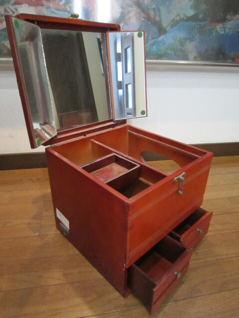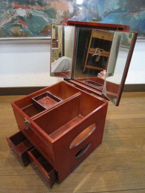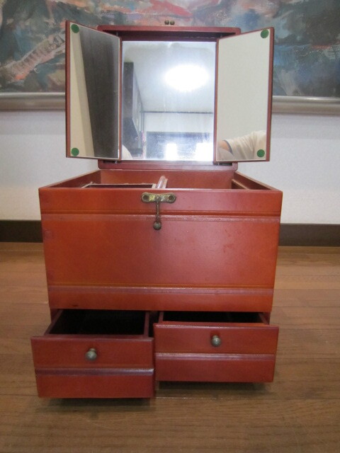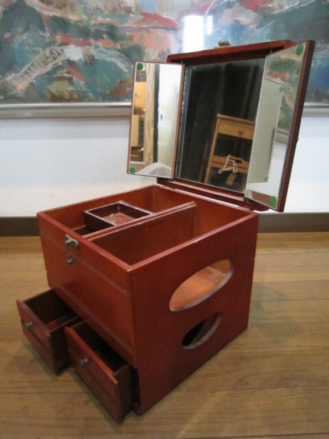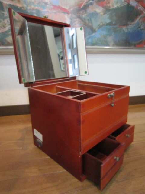 ◆すべて引出 小物の整理 保管に最適です。天板裏に大型姿鏡ありでコスメティック